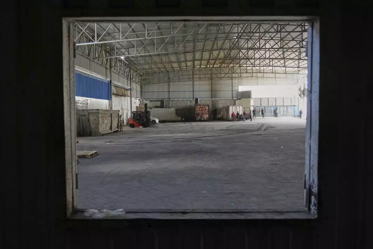 A World Food Program warehouse is seen empty in the Nuseirat refugee camp, Gaza Strip, Saturday April 26, 2025. (AP Photo/Abdel Kareem Hana)