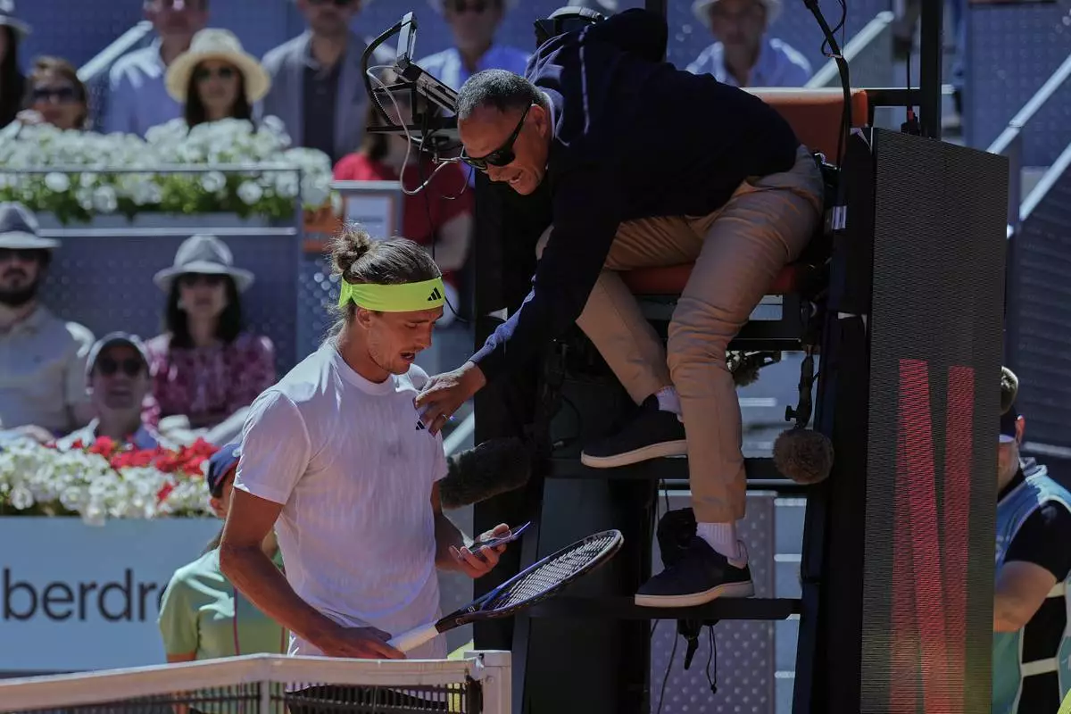 MADRID (AP) — Top-seeded Alexander Zverev got a warning from the umpire for taking a photo of a ball mark during the clay-court Madrid Open on Sunday after complaining about electronic line-calling.