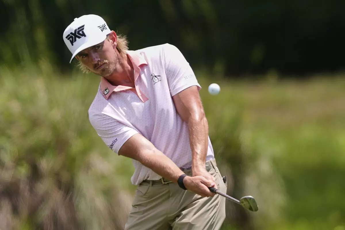 Jake Knapp hits onto the 2nd green during the final round of the PGA Zurich Classic golf tournament at TPC Louisiana in Avondale, La., Sunday, April 27, 2025. (AP Photo/Gerald Herbert)