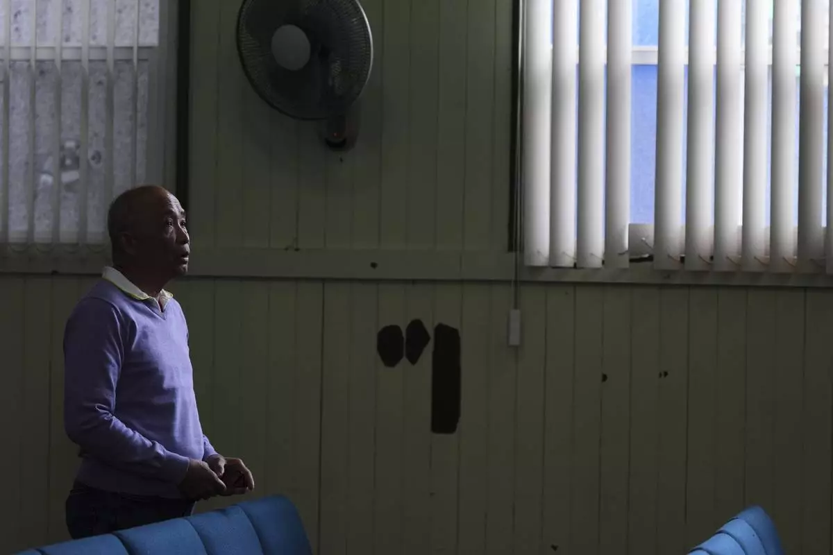 Adonis Quita, center, who witnessed the event, sings during a worship service at the Filipino Fellowship Baptist Church the day after a driver killed multiple people during a Filipino community festival Sunday, April 27, 2025, in Vancouver, British Columbia. (AP Photo/Lindsey Wasson)