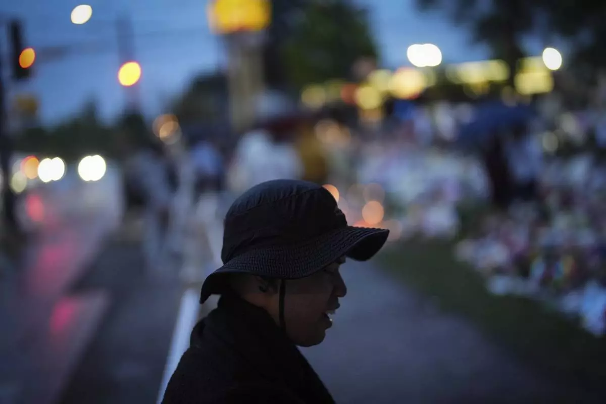 An attendee pays their respects at a memorial for victims after a vehicle drove into a crowd during a Filipino heritage festival in Vancouver, British Columbia, Monday, April 28, 2025. (AP Photo/Lindsey Wasson)