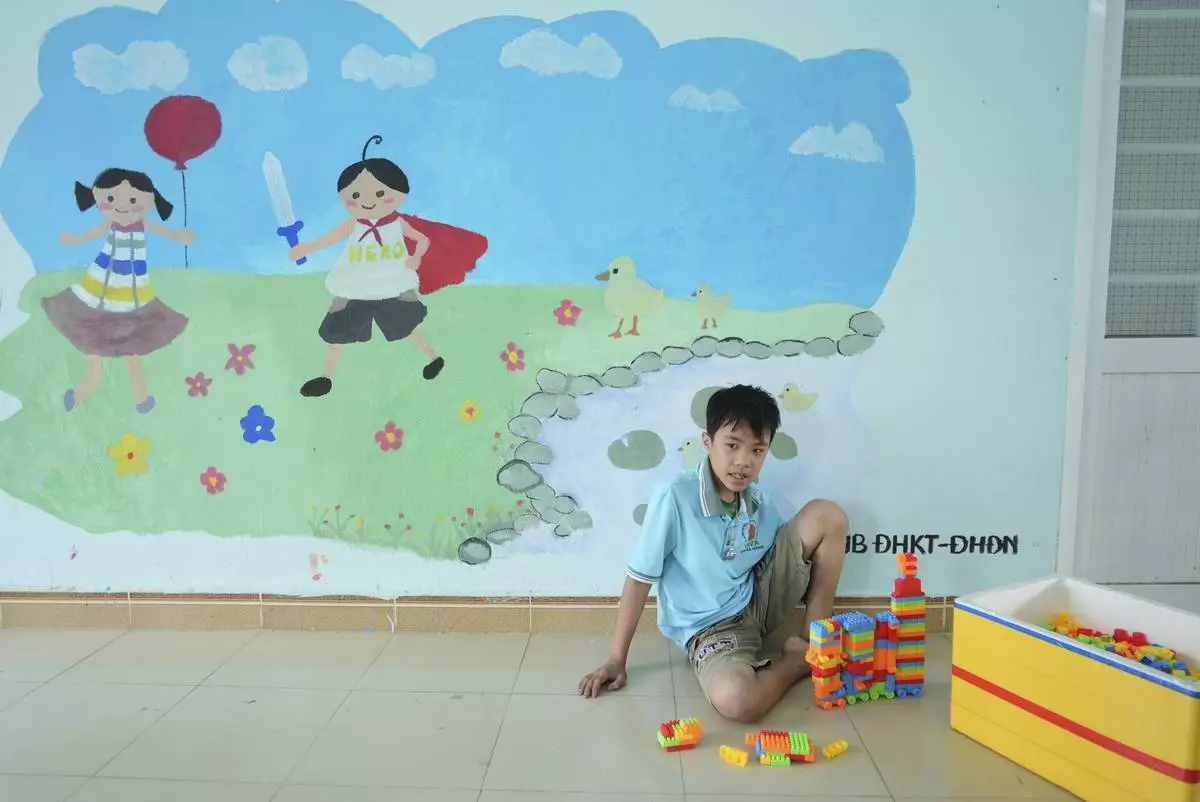 Nguyen Van Quoc Hung, 13, plays with building blocks at a school for victims of Agent Orange in Da Nang, Vietnam, March 7, 2025. (AP Photo/Hau Dinh)