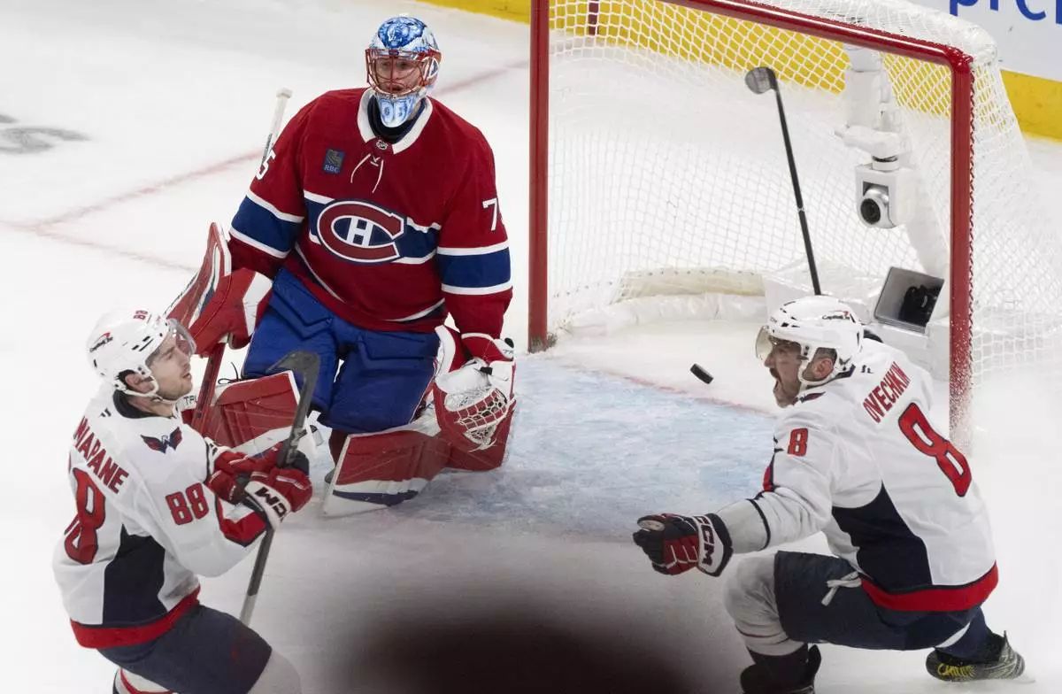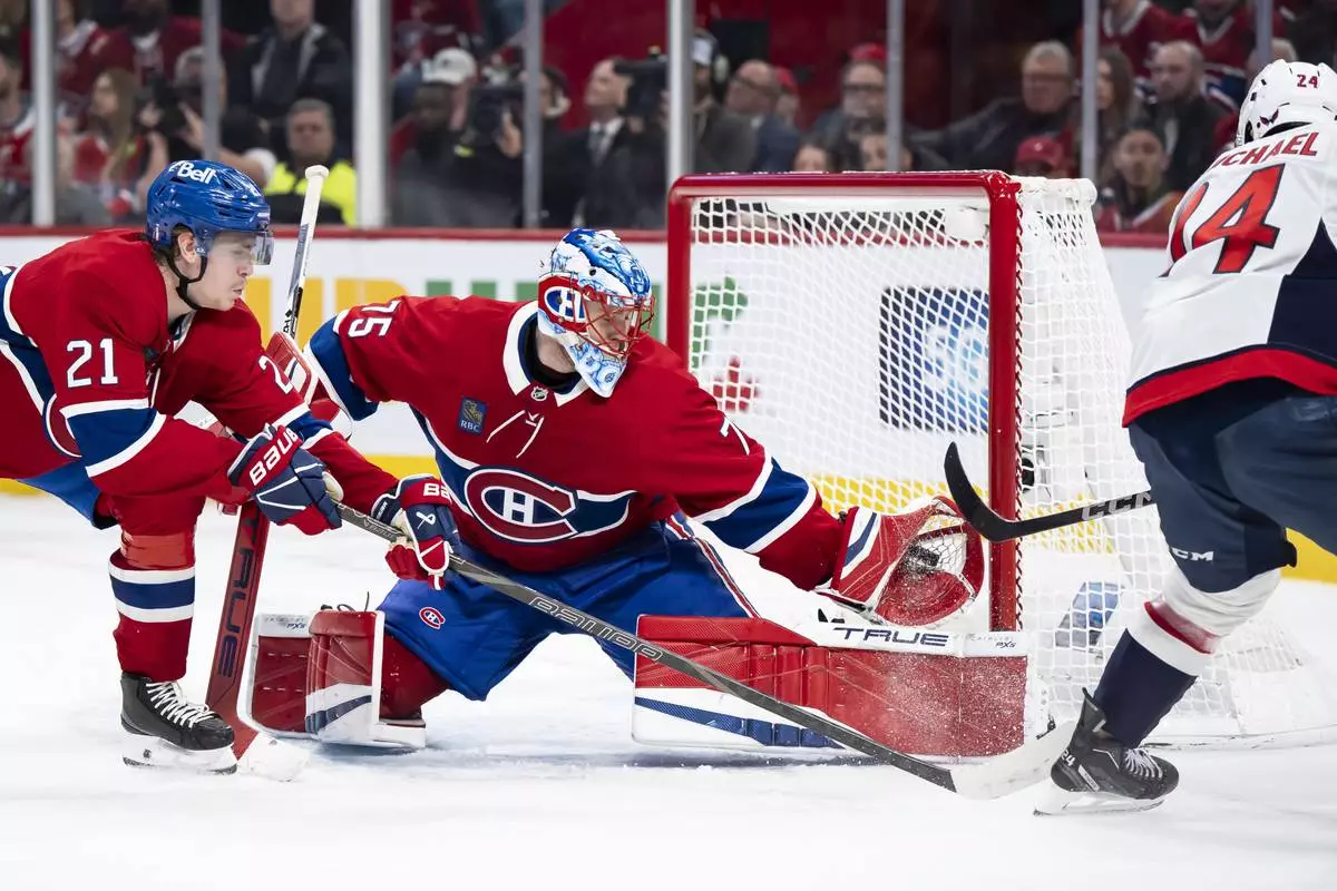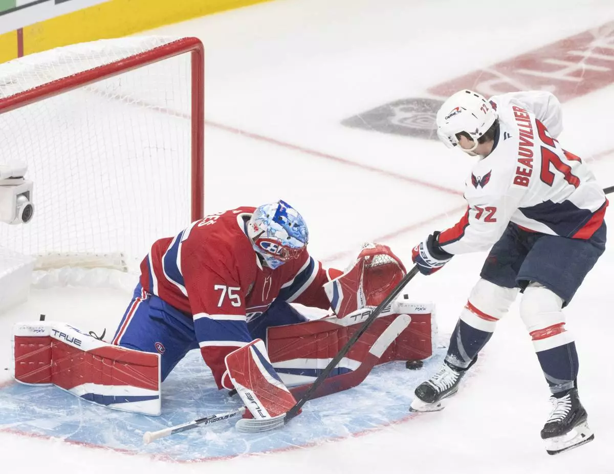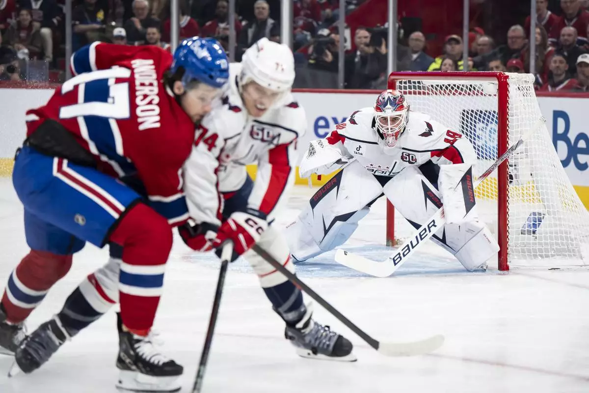 MONTREAL (AP) — Andrew Mangiapane scored the go-ahead goal with just under four minutes remaining, Brandon Duhaime had two goals and Logan Thompson made 16 saves to lead the Washington Capitals to a 5-2 win over the Montreal Canadiens on Sunday night for a 3-1 lead in the first-round series.