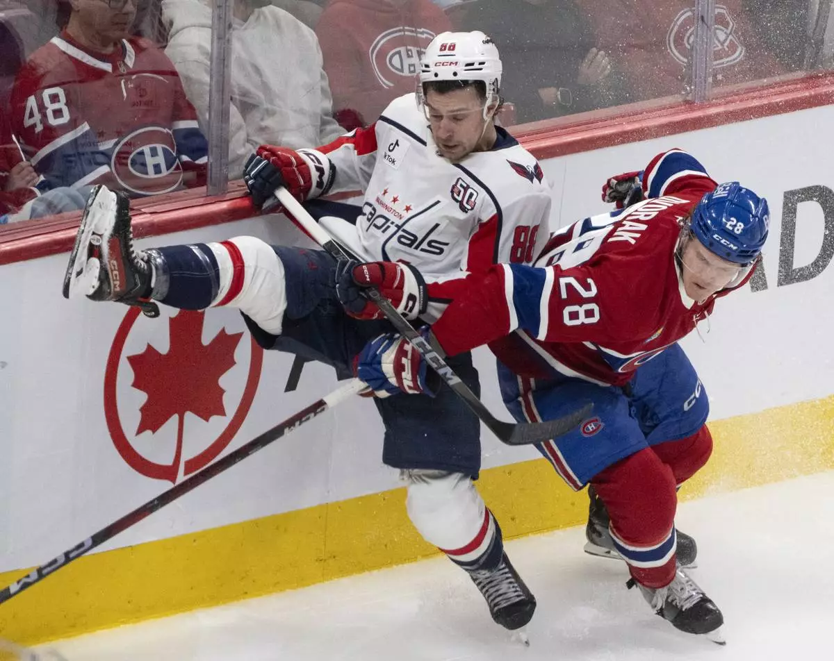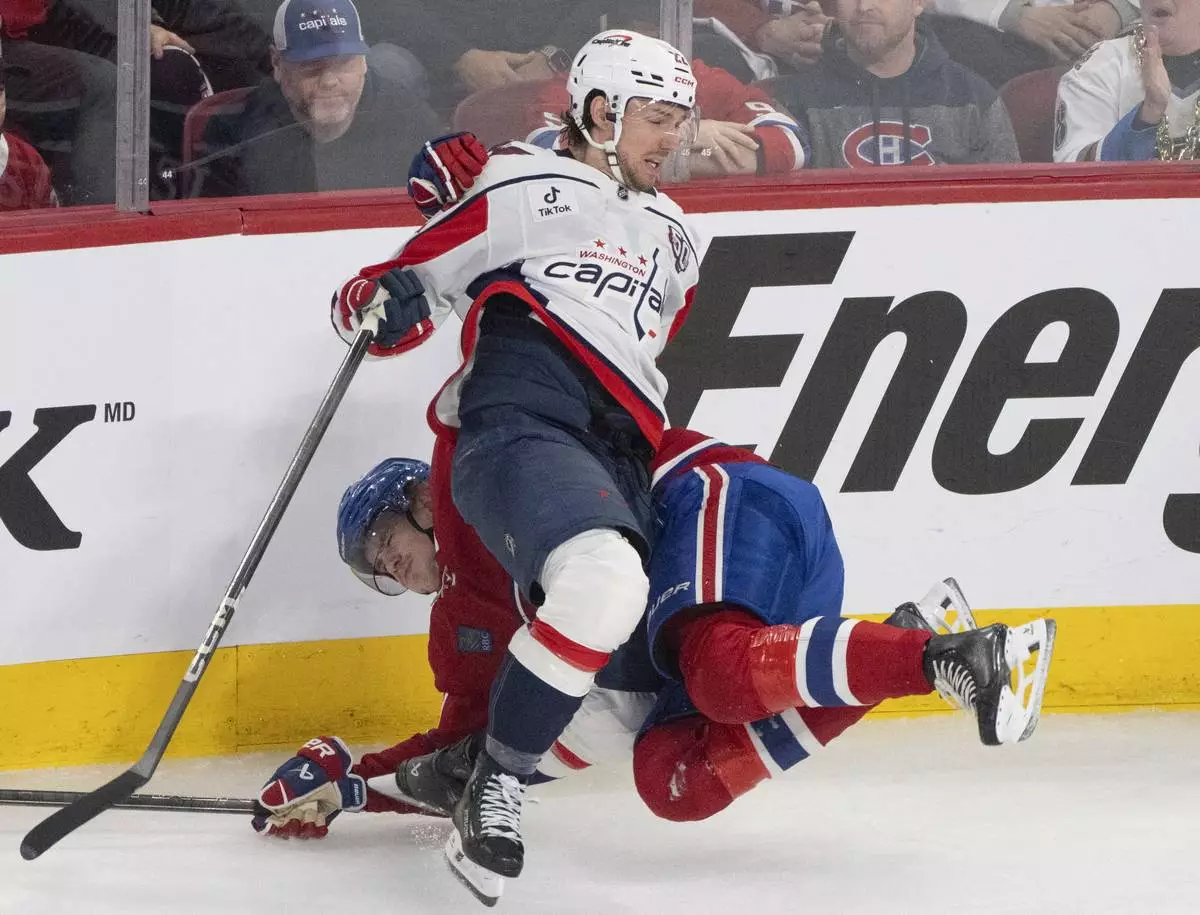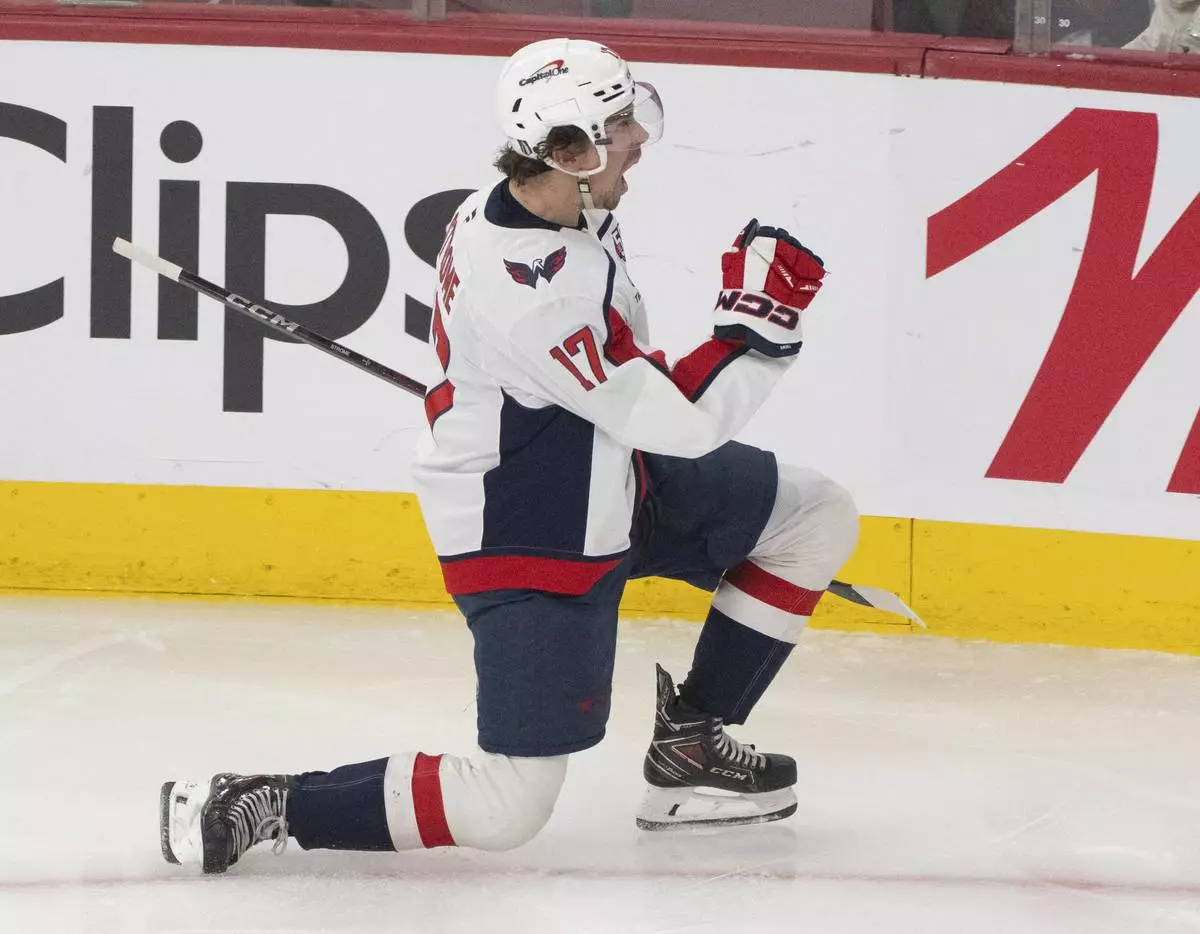 MONTREAL (AP) — Andrew Mangiapane scored the go-ahead goal with just under four minutes remaining, Brandon Duhaime had two goals and Logan Thompson made 16 saves to lead the Washington Capitals to a 5-2 win over the Montreal Canadiens on Sunday night for a 3-1 lead in the first-round series.