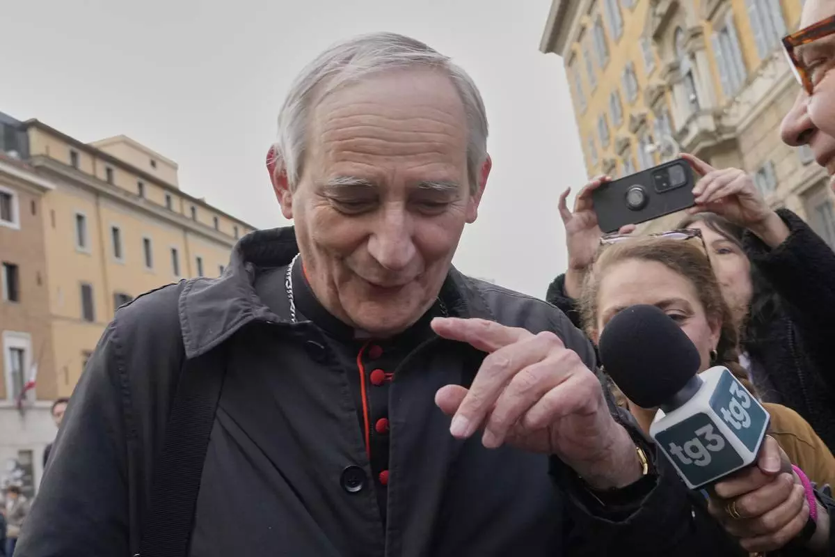 Italian Cardinal Matteo Zuppi, considered a contender to be the next pope, navigated the scrum of journalists with humor, joking that he was “holding his breath” as the microphones and cameras surrounded him all the way to the Vatican gate.