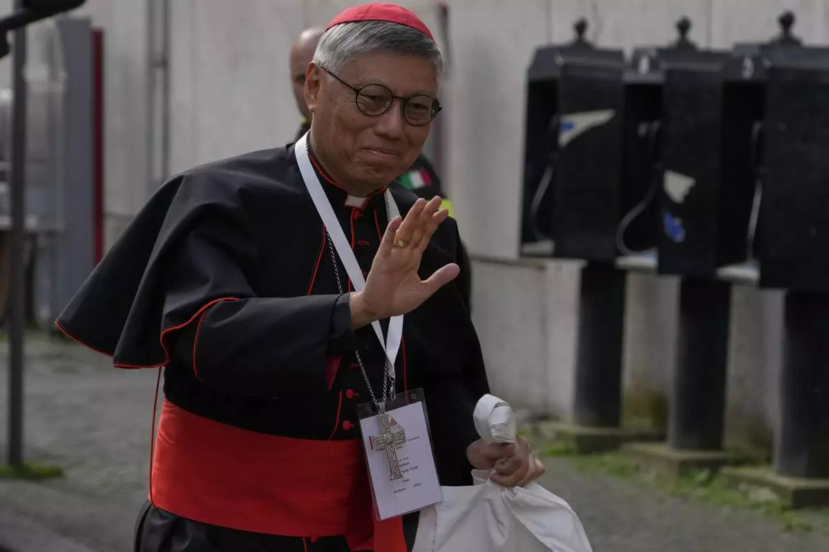 Cardinal Stephen Chow Sau-yan arrives for a college of cardinals' meeting, at the Vatican, Monday, April 28, 2025. (AP Photo/Gregorio Borgia)