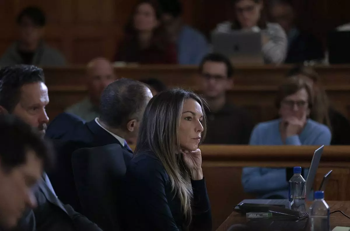 Ashley Vallier, a forensic scientist with the Massachusetts State Police Crime Lab, testifies during the trial of Karen Read in Norfolk Superior Court, Friday, May 16, 2025, in Dedham, Mass. (Mark Stockwell/The Sun Chronicle, Pool)