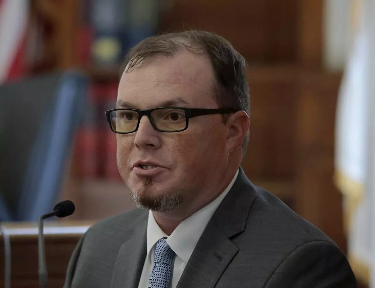 Nicholas Bradford, with Bode Technology lab, testifies in the retrial of Karen Read in the Norfolk Superior Court, Monday, May 19, 2025, in Dedham, Mass. (Pat Greenhouse/The Boston Globe via AP, Pool)