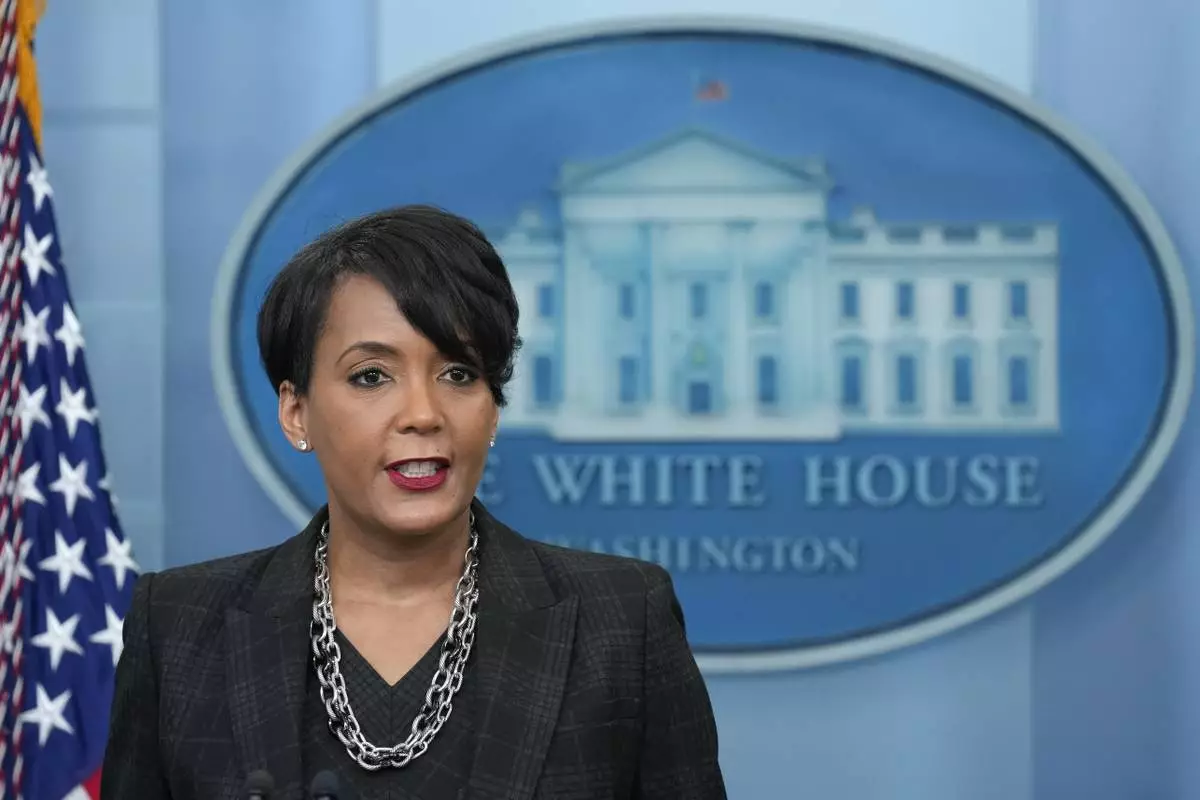 FILE - Former Senior Adviser to President Biden for Public engagement Keisha Lance Bottoms speaks during a daily briefing at the White House in Washington, Jan. 13, 2023. (AP Photo/Susan Walsh, File)