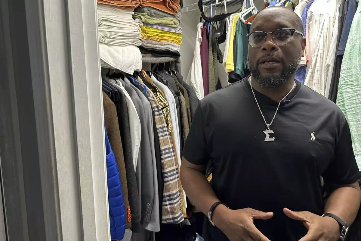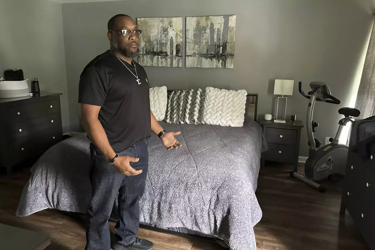 Toi Cliatt talks about the raid in the master bathroom closet he and then-girlfriend Trina Martin hid in after the FBI broke into their home, in Atlanta on Friday, April 25, 2025. (AP Photo/Sudhin Thanawala)