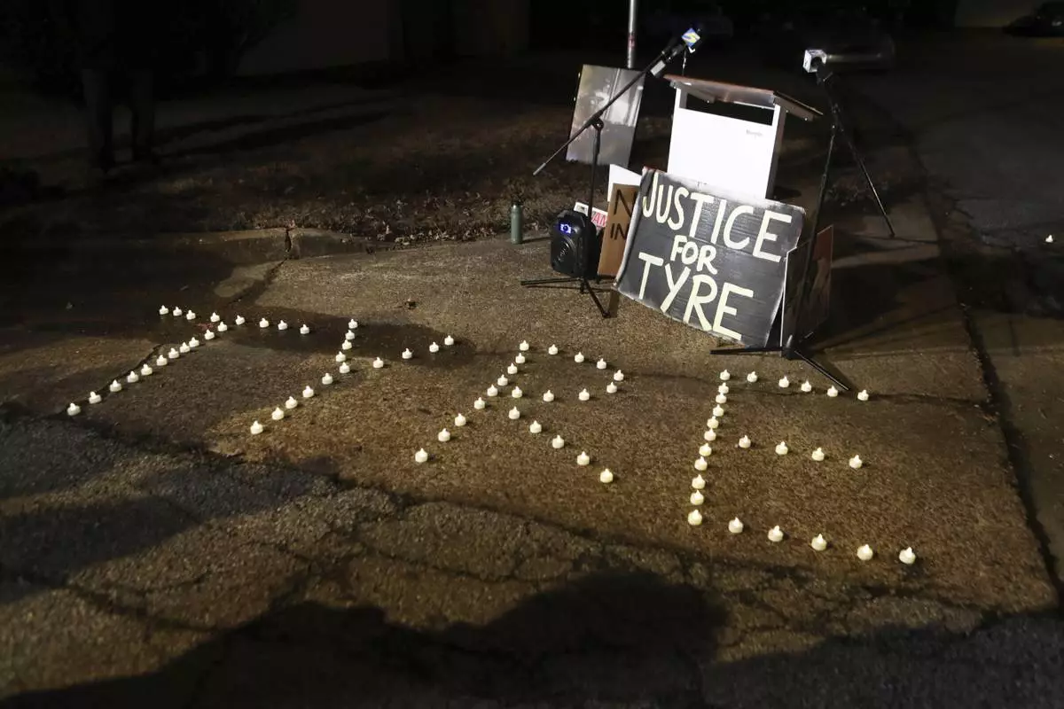 FILE - Candles spell out the name of Tyre Nichols during a candlelight vigil for Nichols on the anniversary of his death, Jan. 7, 2024, in Memphis. (AP Photo/Karen Pulfer Focht, file)