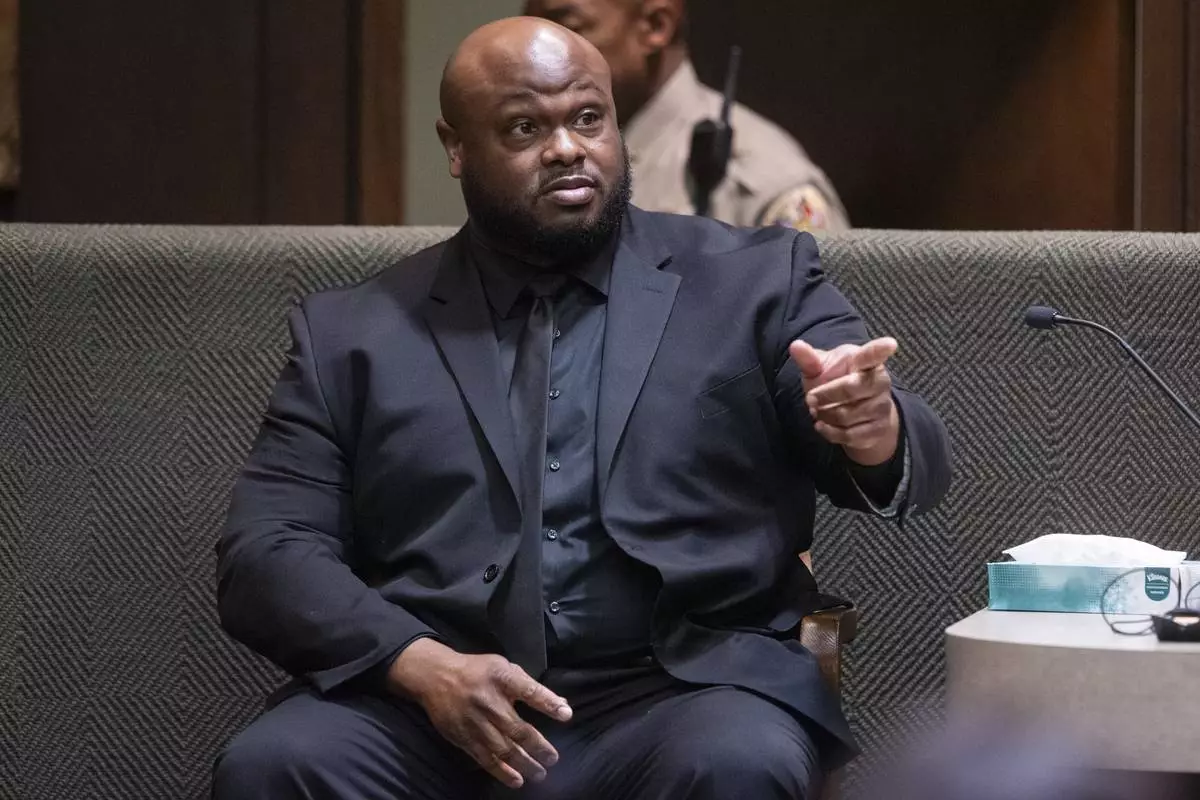 Desmond Mills Jr., a former Memphis Police Department officer who has taken a plea deal, identifies former MPD officer and defendant Tadarrius Bean during the second day of the state trial for the death of Tyre Nichols at 201 Poplar in Memphis, Tenn., on Tuesday, April 29, 2025. (Chris Day/Commercial Appeal/USA Today Network via AP, Pool)