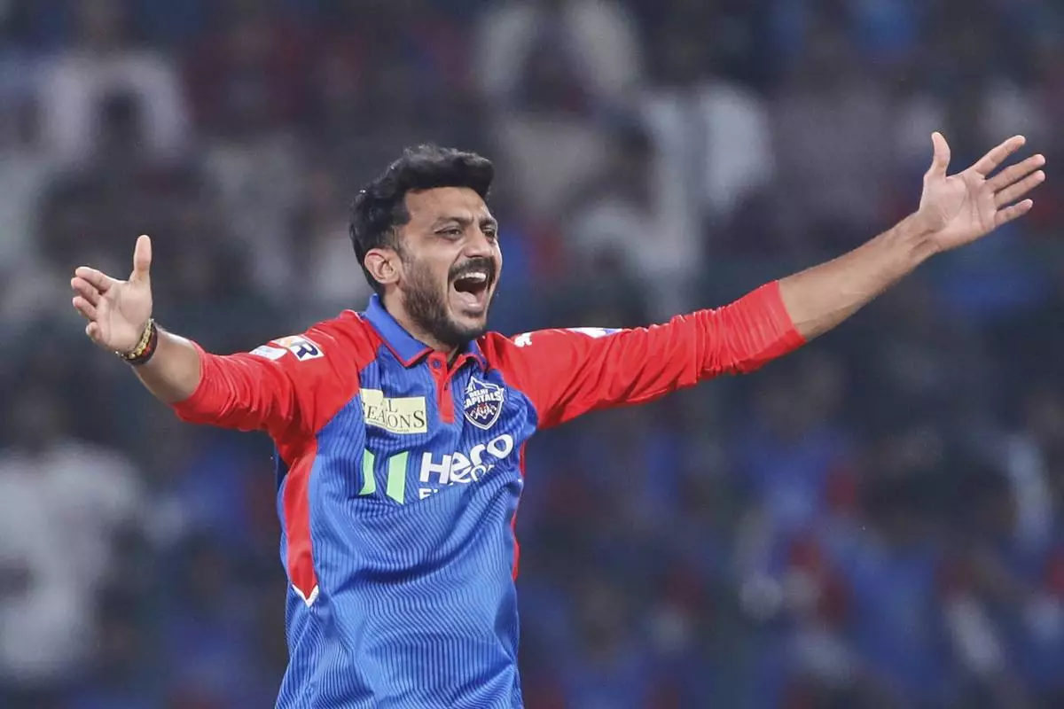Delhi Capitals' captain Axar Patel appeals successfully for the wicket of Kolkata Knight Riders' captain Ajinkya Rahane during the Indian Premier League cricket match between Delhi Capitals and Kolkata Knight Riders at Arun Jaitley Stadium in New Delhi, India, Tuesday, April 29, 2025. (AP Photo)
