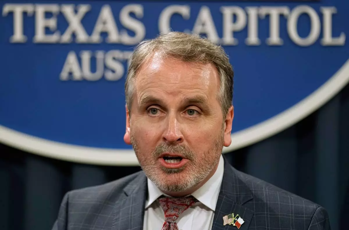 FILE - Texas State Sen. Bryan Hughes, R-Mineola, speaks during a news conference at the Texas Capitol in Austin, Texas, June 7, 2023. (AP Photo/Eric Gay, file)