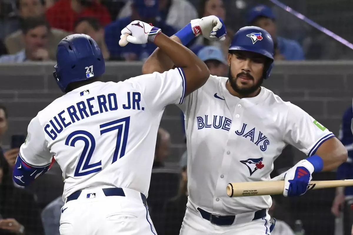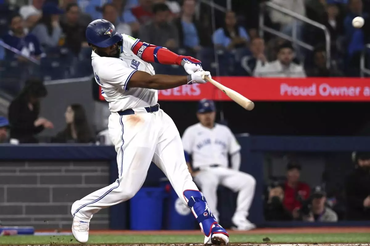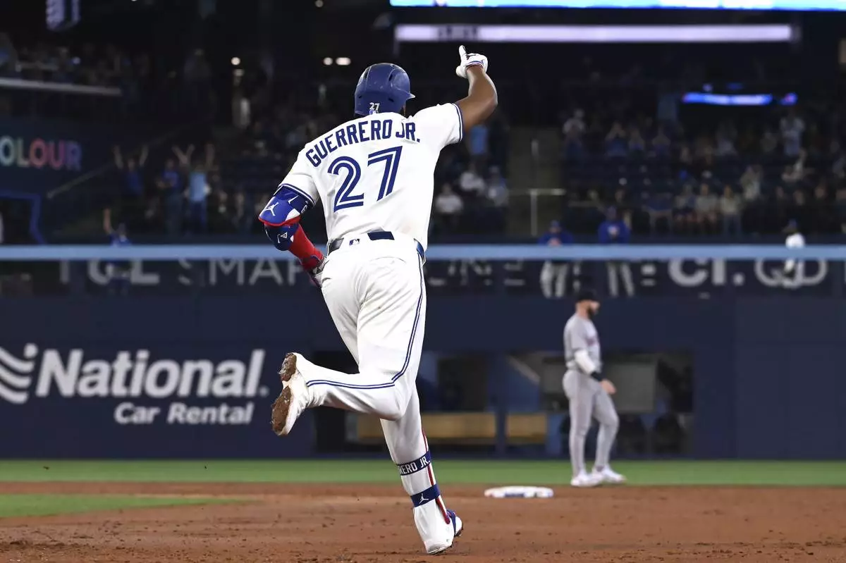 Vladimir Guerrero Jr. hit a two-run homer and Gold Glove outfielder Daulton Varsho recovered from a stumble to make a sensational catch in his season debut for Toronto, which has lost eight of nine. The Blue Jays have scored three runs or fewer in seven of those games.