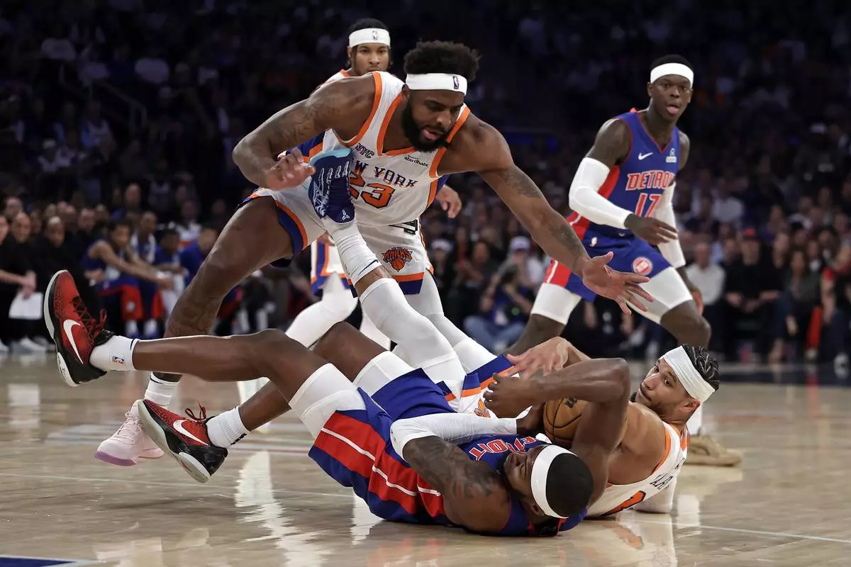 The game was tied at 95 before Jalen Duren made consecutive baskets and Cunningham scored for a six-point lead. The Pistons got a good break when Brunson and Josh Hart both left the game with injuries with 2:57 remaining and play went on for a while without a stoppage when they were ready to return. By the time they could, there were only 27 seconds left.