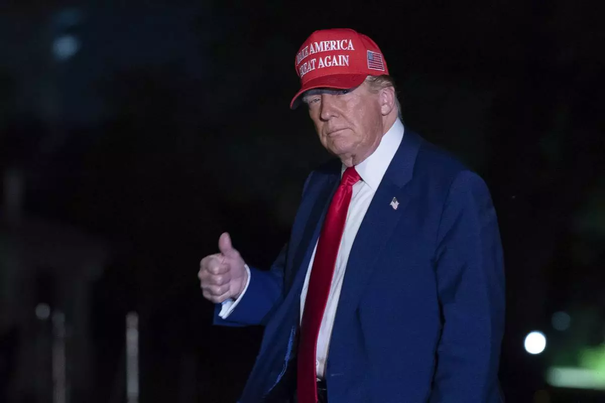President Donald Trump walks to speak to reporters as he leaves the White House en route to attend a rally in Macomb County, Mich., to mark the 100th day of his second term in office, Tuesday, April 29, 2025, in Washington. (AP Photo/Manuel Balce Ceneta)