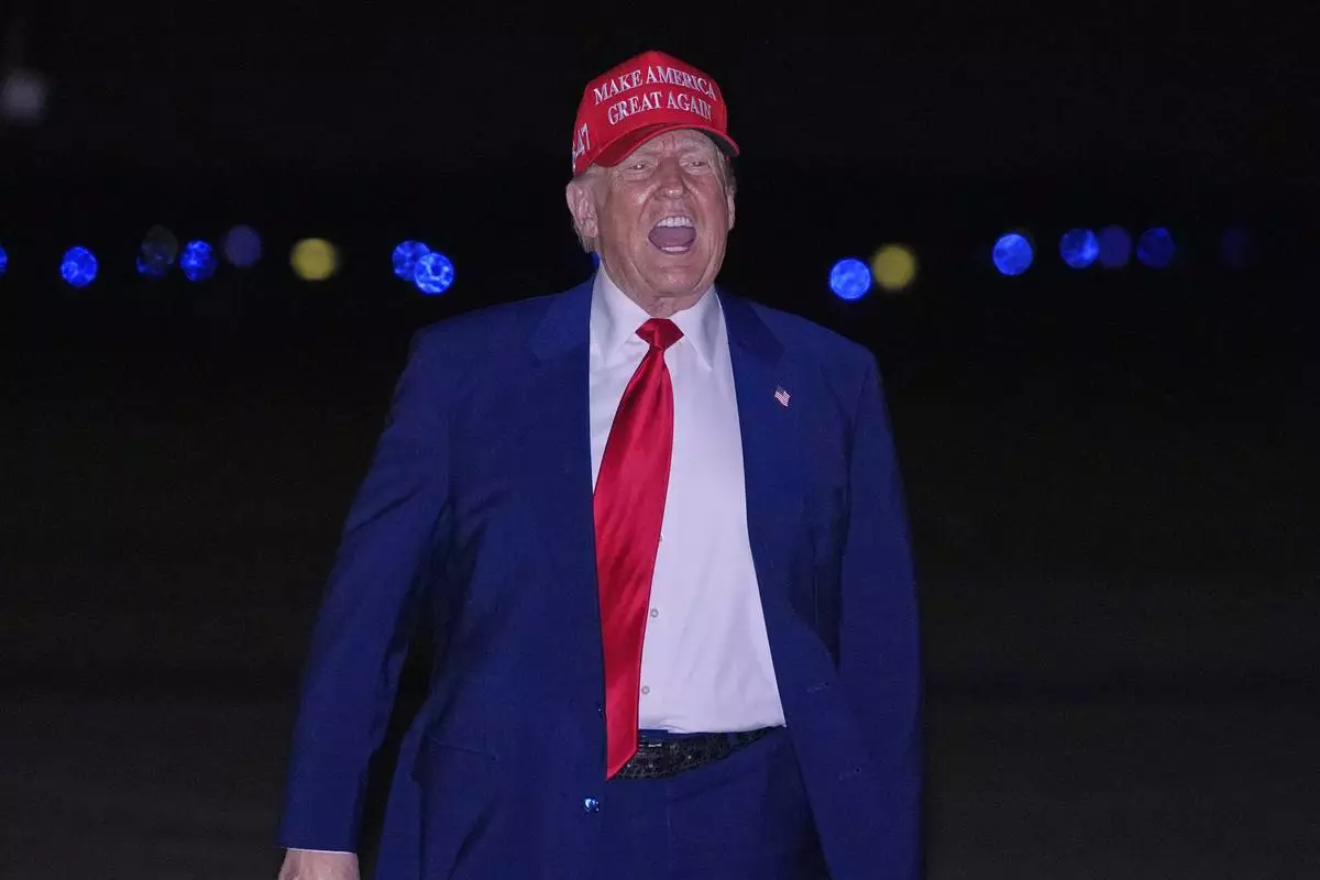 President Donald Trump talks after arriving on Air Force One, Tuesday, April 29, 2025, at Joint Base Andrews, Md. (AP Photo/Alex Brandon)
