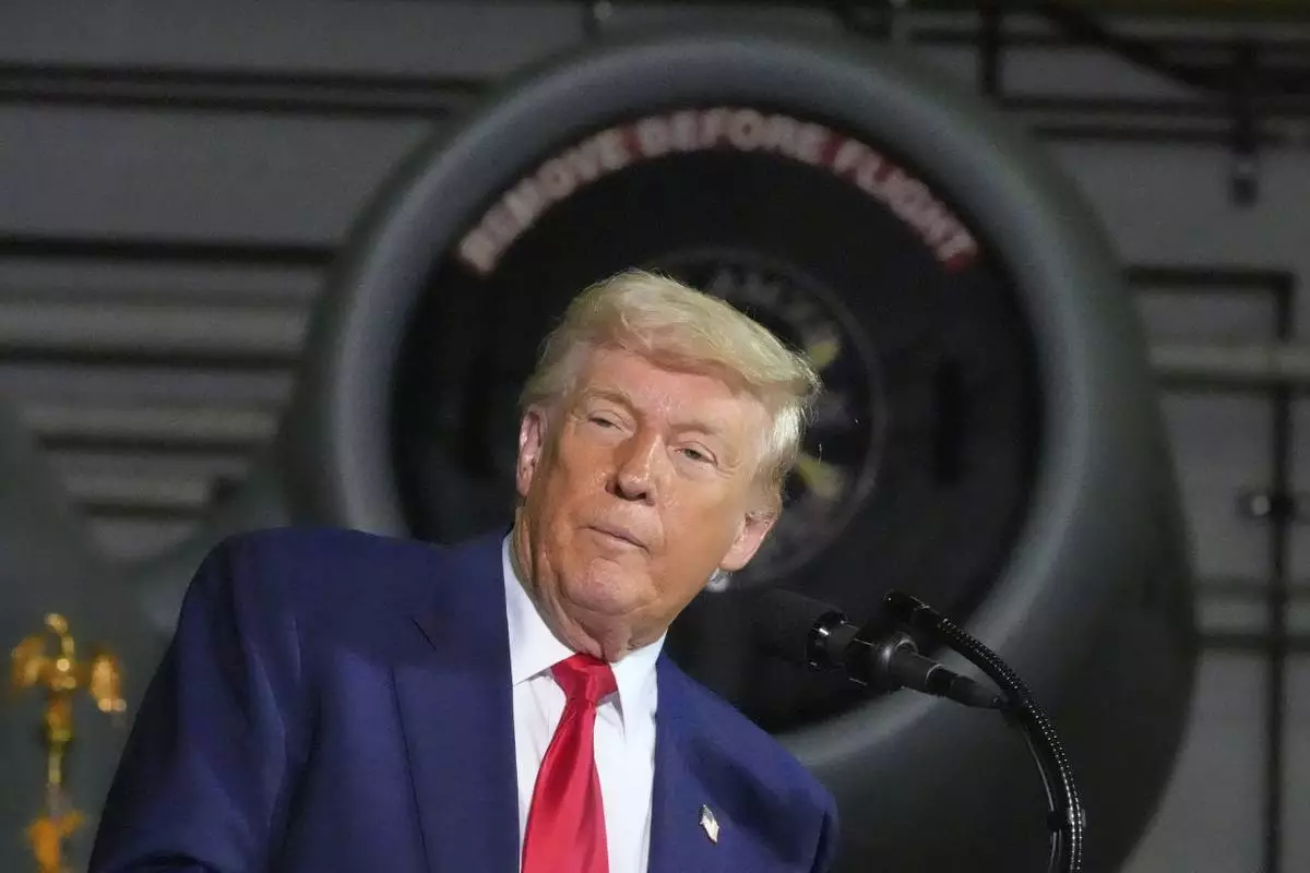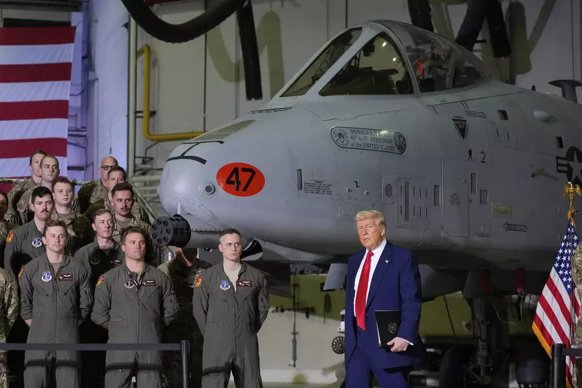 President Donald Trump speaks to members of the Michigan National Guard at Selfridge Air National Guard Base, Tuesday, April 29, 2025, in Harrison Township, Mich. (AP Photo/Alex Brandon)