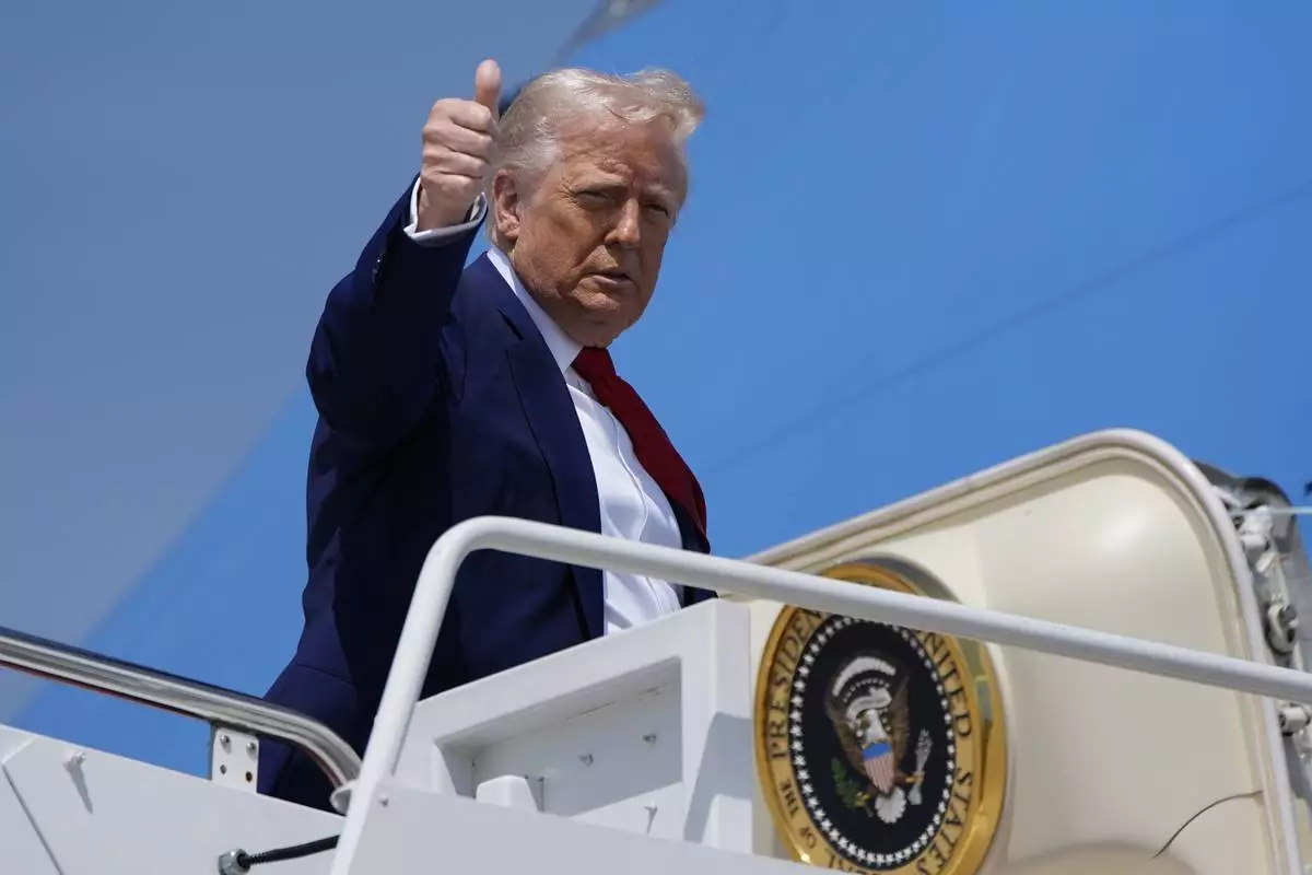 President Donald Trump boarding Air Force One, Tuesday, April 29, 2025, at Joint Base Andrews, Md. (AP Photo/Alex Brandon)