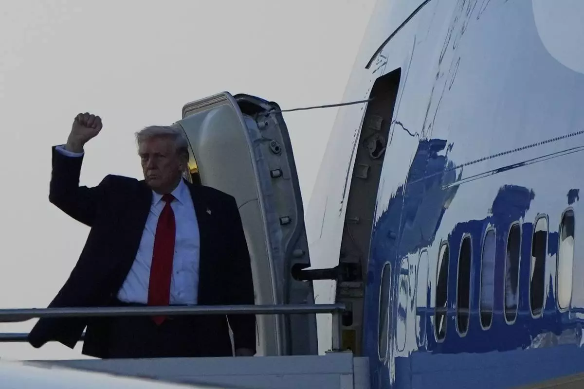 President Donald Trump arrives on Air Force One at Selfridge Air National Guard Base, Tuesday, April 29, 2025, in Harrison Township, Mich. (AP Photo/Alex Brandon)