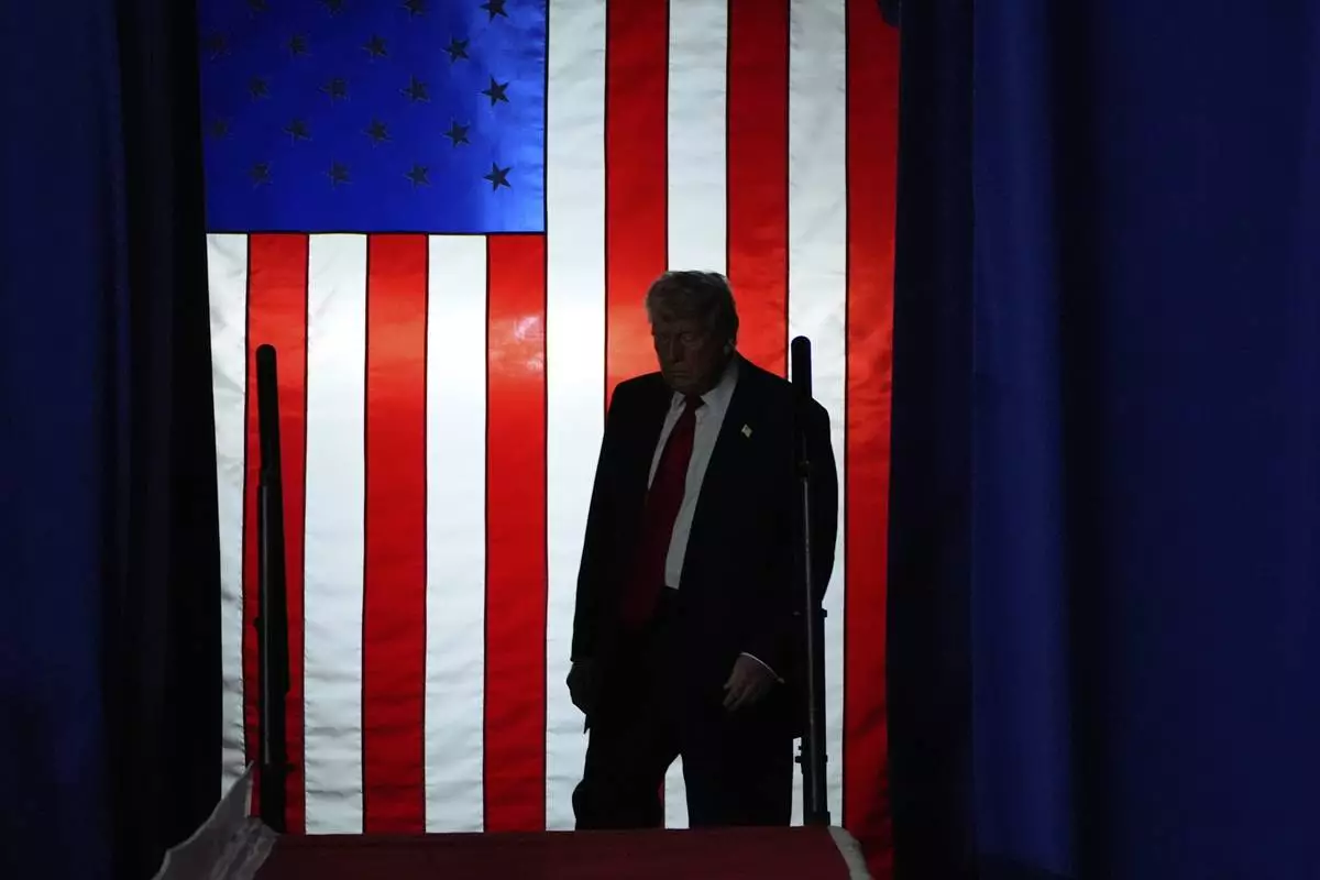 President Donald Trump arrives to speak on his first 100 days at Macomb County Community College Sports Expo Center, Tuesday, April 29, 2025, in Warren, Mich. (AP Photo/Paul Sancya)