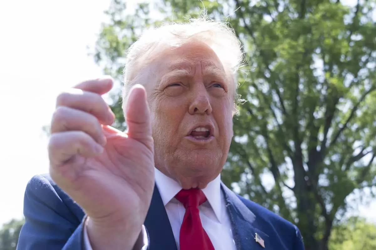 President Donald Trump speaks to reporters as he leaves the White House en route to attend a rally in Macomb County, Mich., to mark the 100th day of his second term in office, Tuesday, April 29, 2025, in Washington. (AP Photo/Manuel Balce Ceneta)