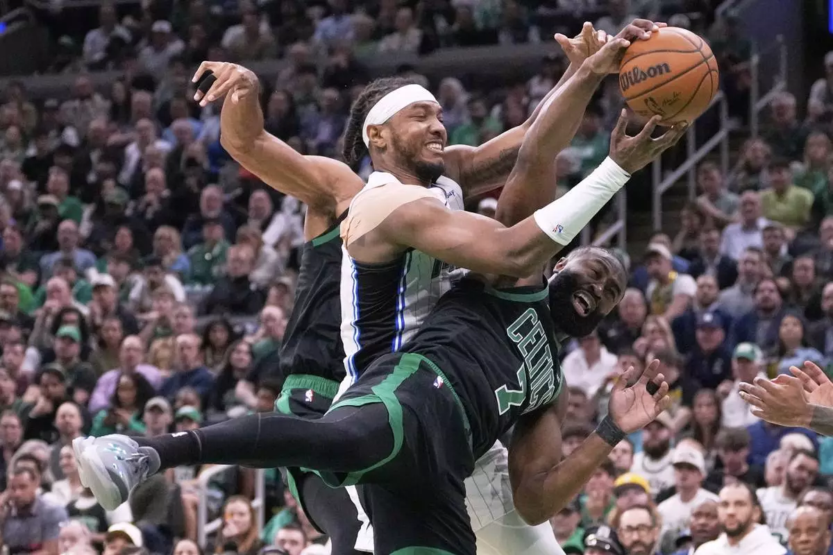 BOSTON (AP) — When Magic star Paolo Banchero went to the bench with five fouls, the Boston Celtics pulled away and cruised into the Eastern Conference semifinals.