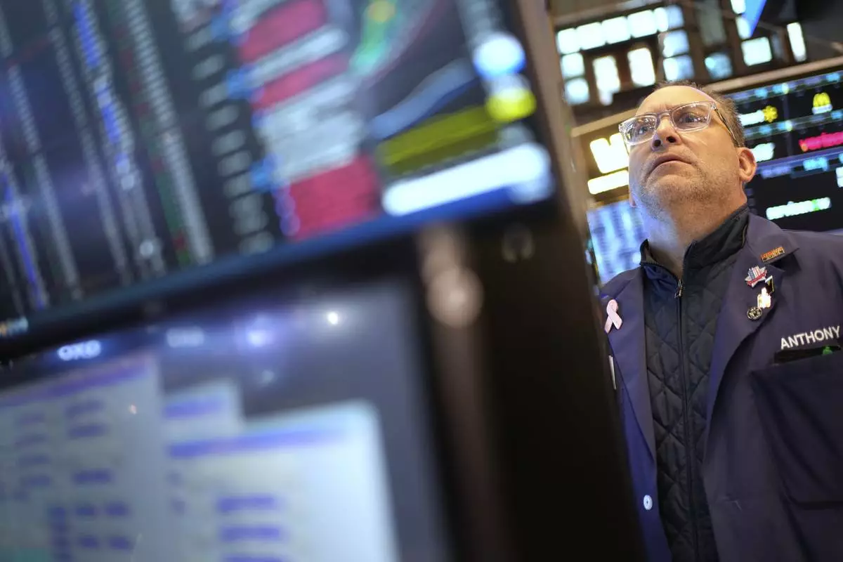 Anthony Matesic works on the floor at the New York Stock Exchange in New York, Wednesday, April 30, 2025. (AP Photo/Seth Wenig)