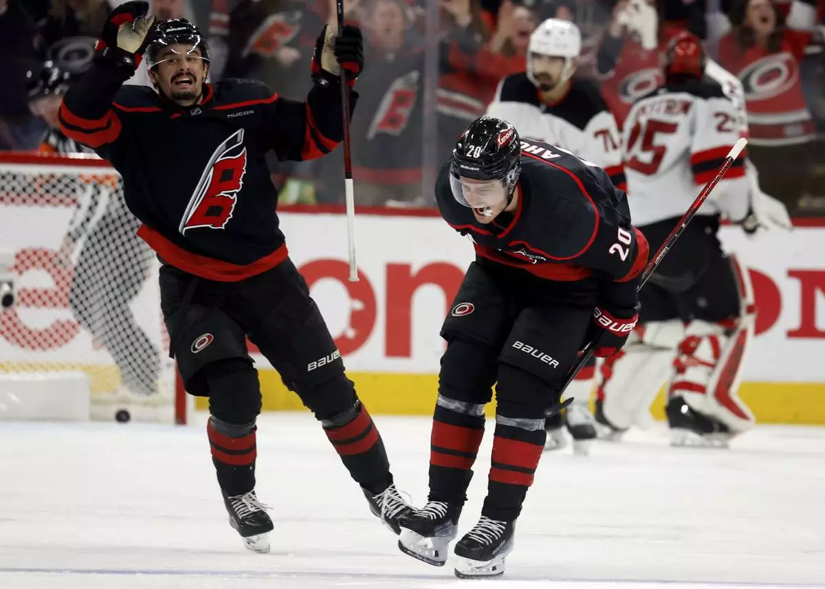 Aho also had the goal that tied it 4-4 with 8:33 left in the second period with the Hurricanes holding a two-man advantage.