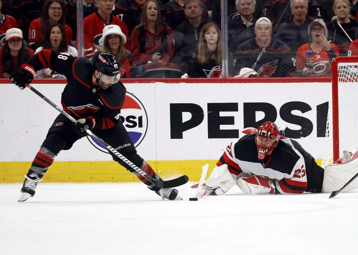 Markstrom regrouped from that rough second period to finish with 49 saves for the Devils, operating as a one-man survival raft in the first overtime as Carolina put shot after shot on the net with a chance to advance riding on each one — including Carolina’s Seth Jarvis ringing the left post with about 4 1/2 minutes left in the first OT.