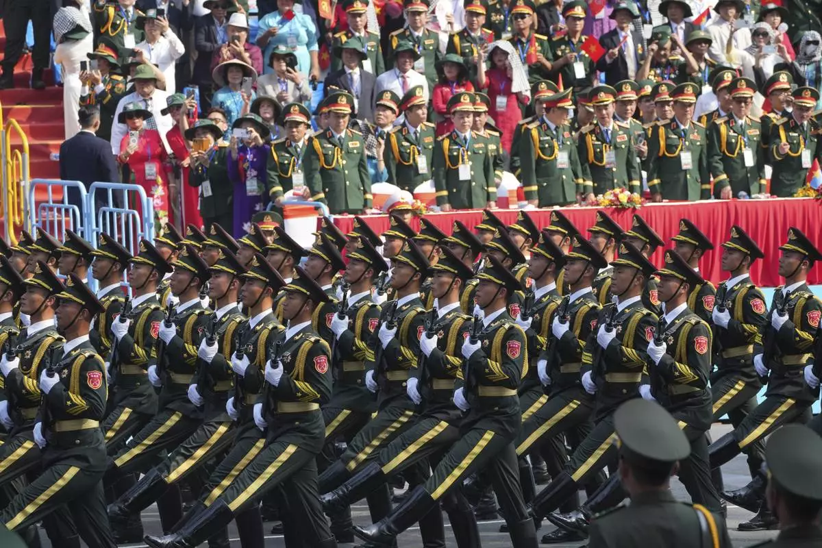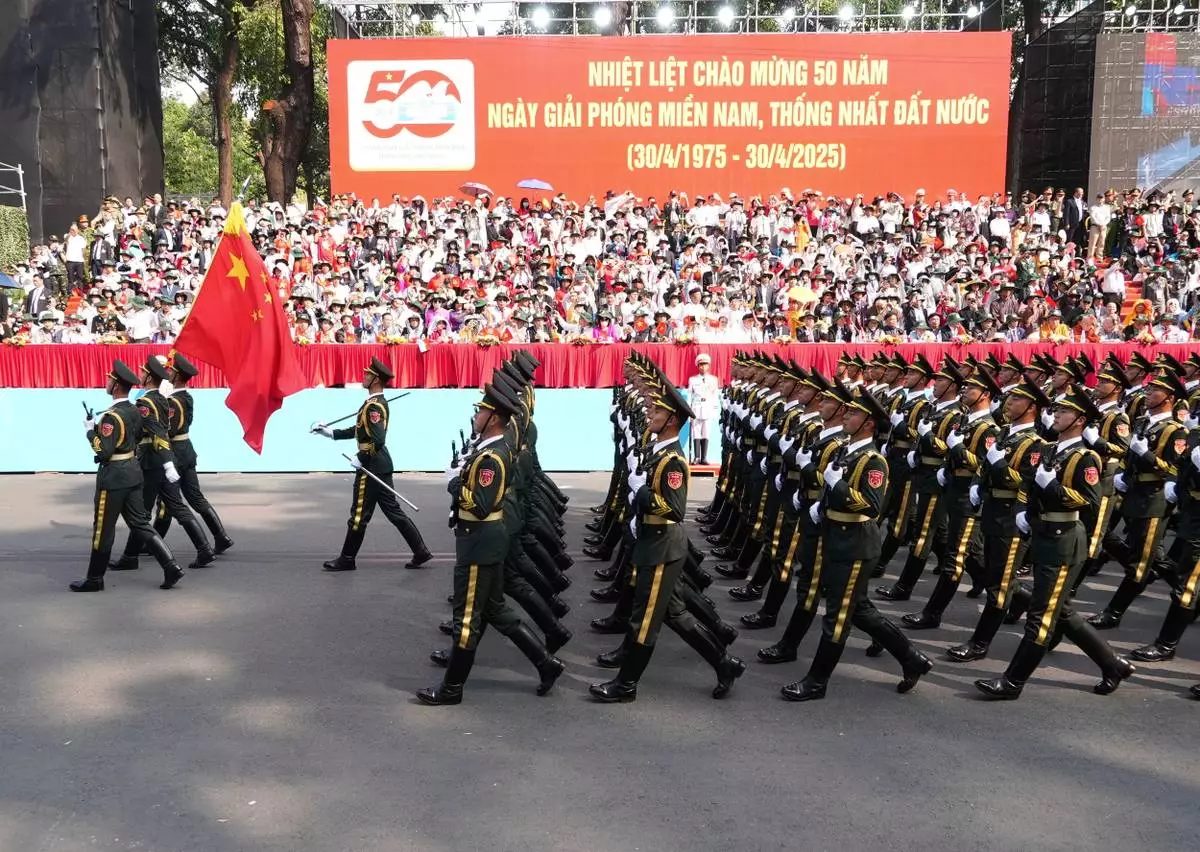 Chinese troops march during a parade to commemorate the 50th anniversary of the end of the Vietnam War in Ho Chi Minh City Wednesday, April 30, 2025. (AP Photo/Hau Dinh)