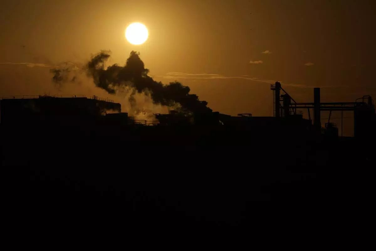 The sun rises behind the JBS meat processing plant, Wednesday, April 16, 2025, in Panhandle, Texas. (AP Photo/Eric Gay)