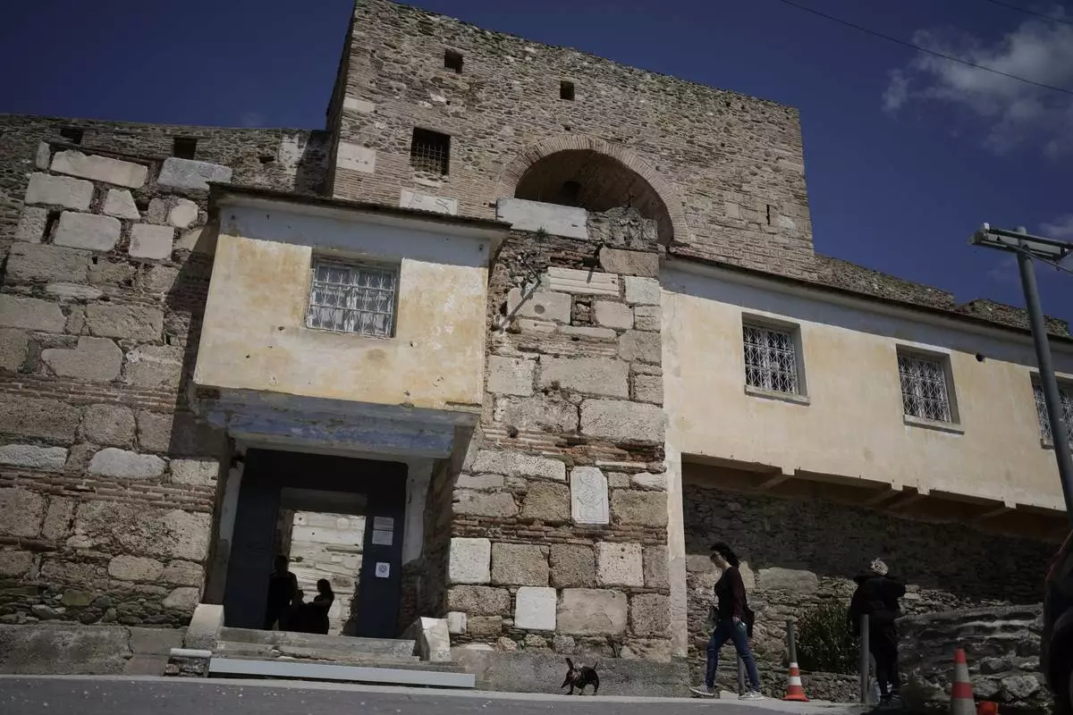 People walk outside Yedi Kule prison, which is now a museum, in the city of Thessaloniki, Greece, Saturday, April 12, 2025. (AP Photo/Thanassis Stavrakis)