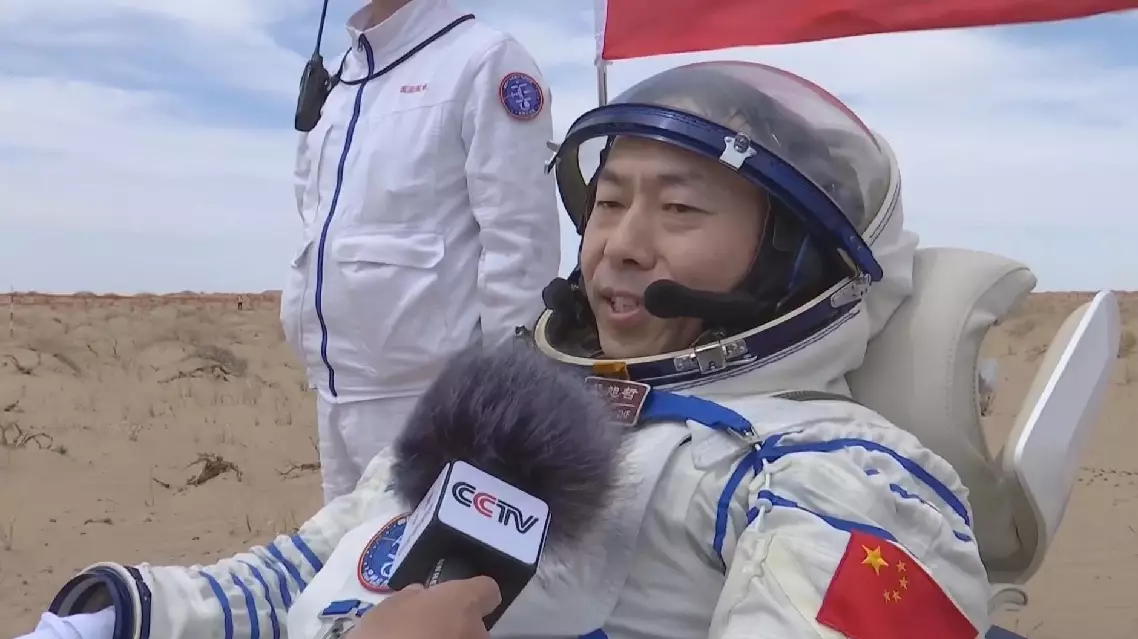 "In space, we gazed at the beautiful blue planet countless times. This is the common home for humanity and needs to be protected by all of us together. Especially, the vibrant red outside the space station's cabin wall, the brightest color in space, filled me with pride for our great motherland. On this mission, I led two people born in the 1990s. With the crew united as one and the assistance of the ground staff, we successfully completed the task entrusted by our country and the people. In the future, we will continue to maintain a diligent attitude, scripting new chapters for China's space industry in the new era," Cai said in an interview with China Central Television shortly after he was carried out of the return capsule.