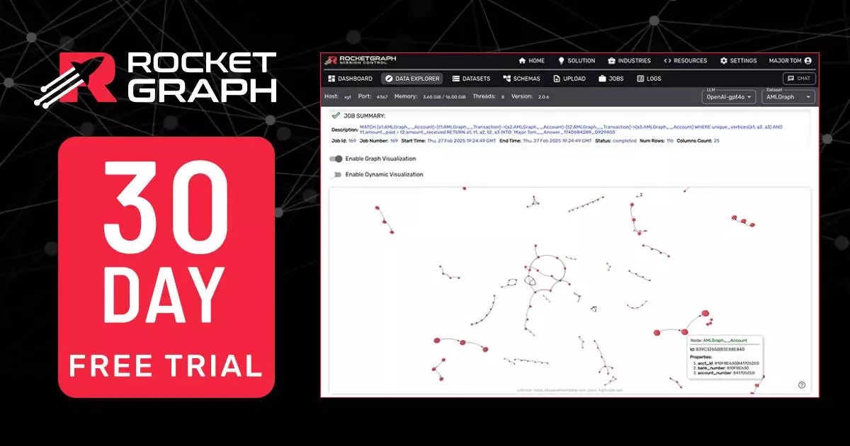 “We believe graph analytics should be accessible to anyone who wants to ask better questions of their data,” said Brock Charles Alston, CEO of Rocketgraph. “With this trial, we’re inviting organizations to see how quickly they can go from setup to insight—whether that’s investigating suspicious behavior, mapping supply chains, or aligning data from across systems.”