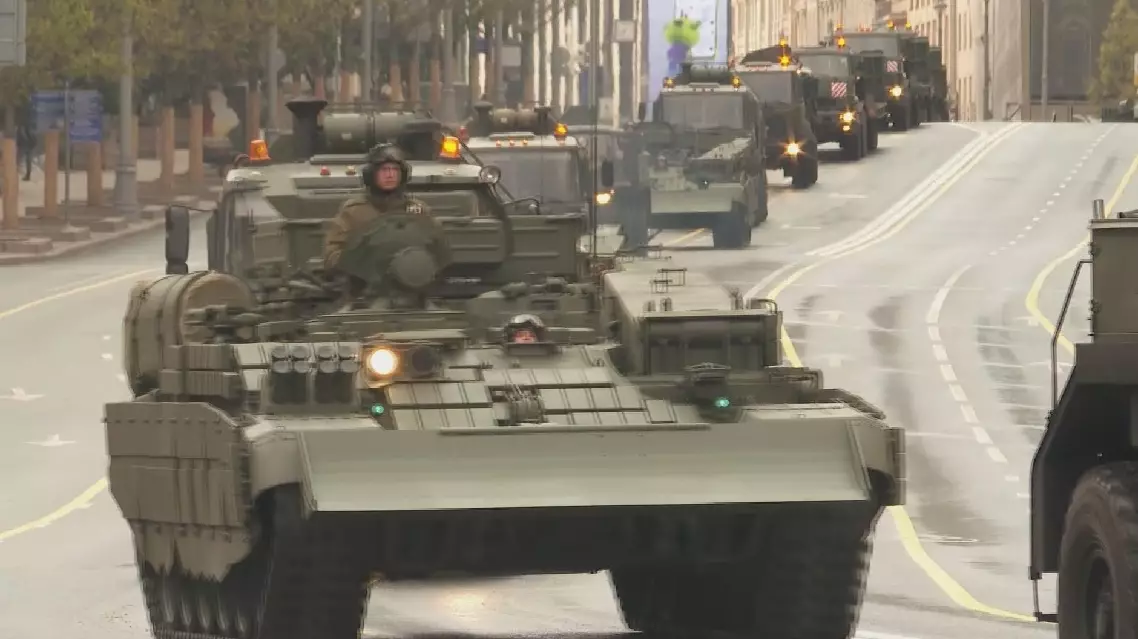 The rehearsal officially began at 22:00, with marching column preceding the display of military equipment. Led by the legendary T-34 tank, the parade of equipment, showcased a variety of modern military technology, including the Geranium drones, Iskander ballistic missiles and Yars intercontinental ballistic missiles.