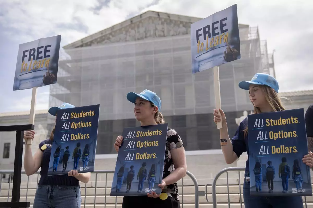 Supporters of charter schools rally outside of the Supreme Court on Wednesday, April 30, 2025, in Washington. (AP Photo/Mark Schiefelbein)