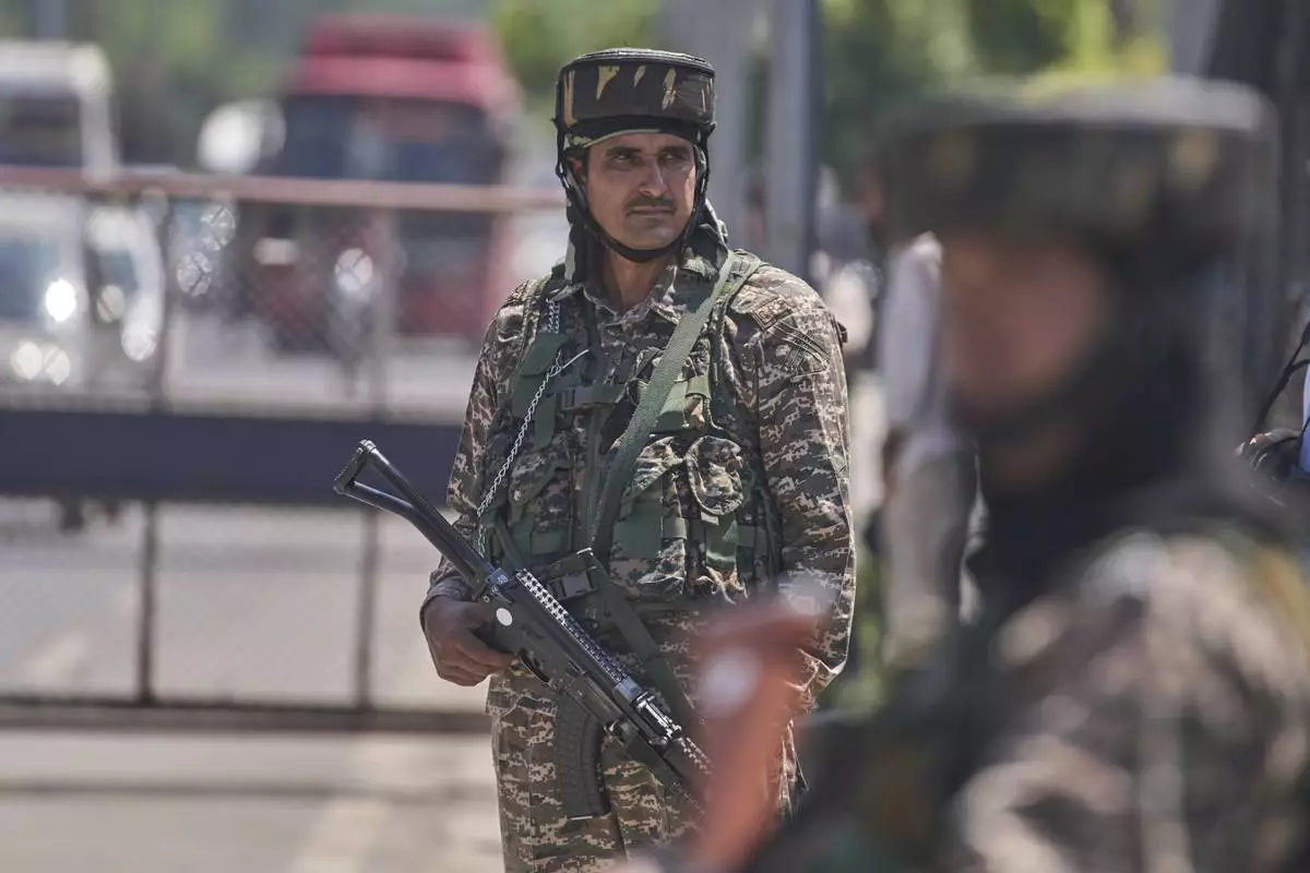Indian paramilitary soldiers stand guard at a temporary checkpoint in Srinagar, Indian controlled Kashmir, Wednesday, April 30, 2025. (AP Photo/Dar Yasin)