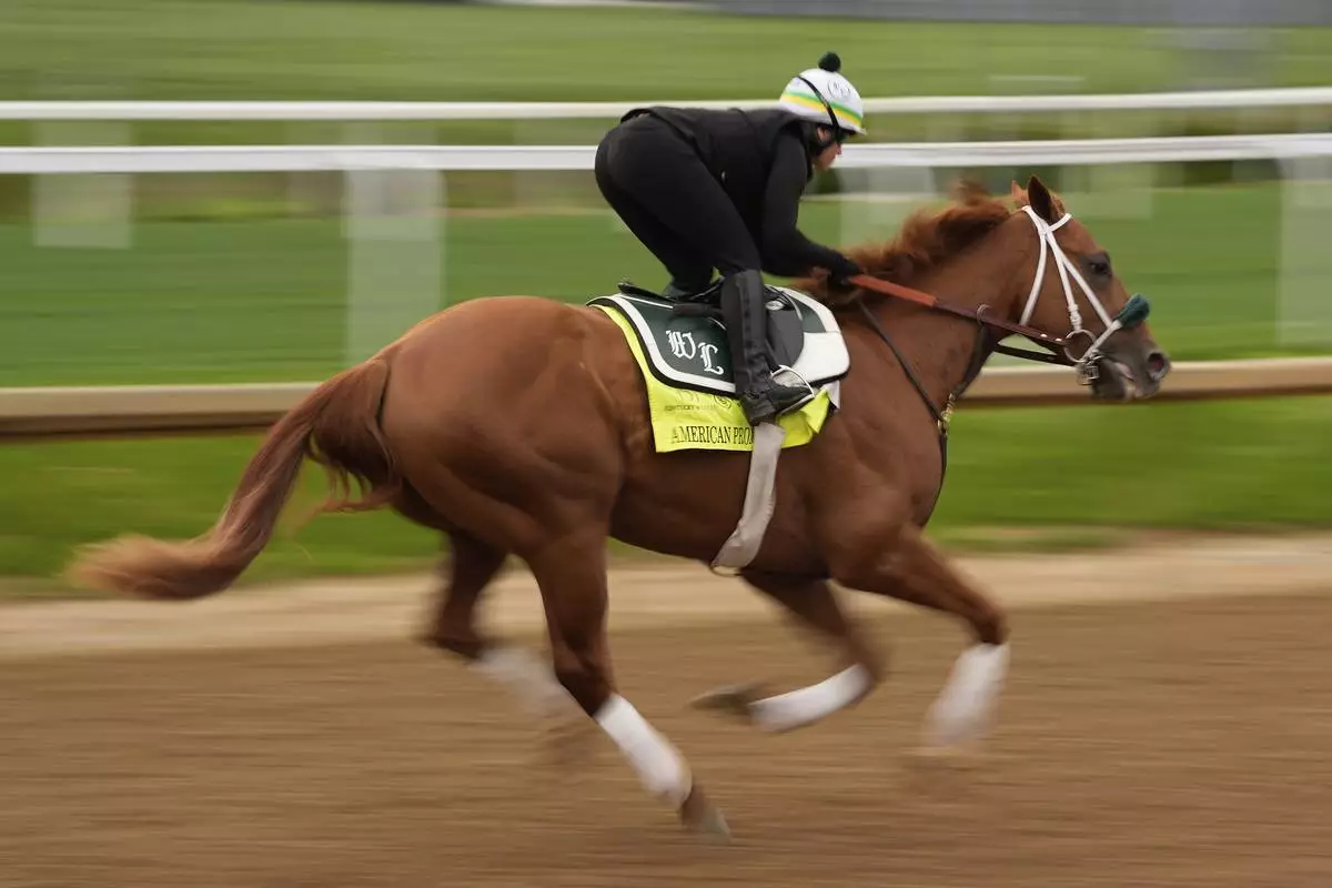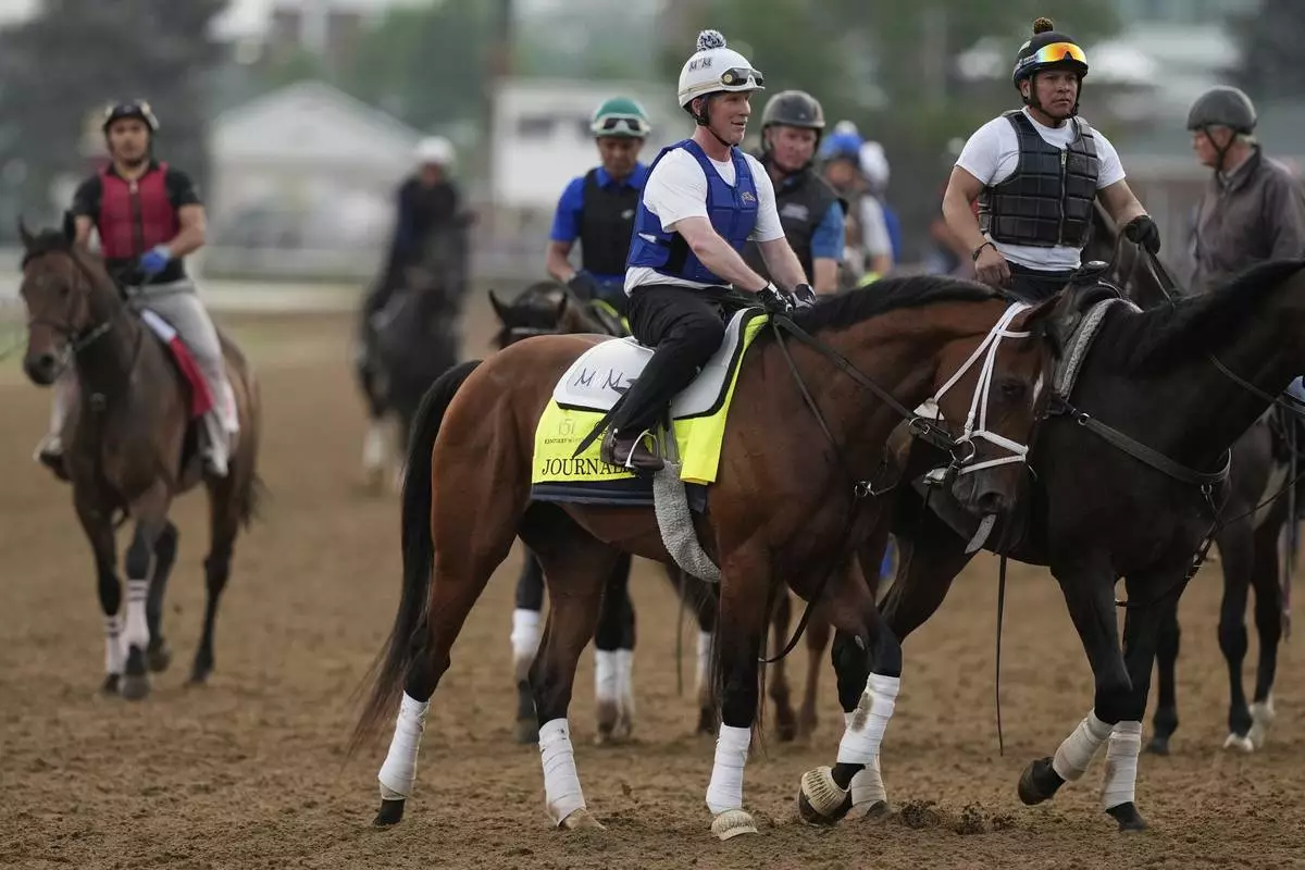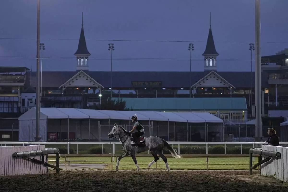 LOUISVILLE, Ky. (AP) — On a crisp, clear morning, a chestnut thoroughbred thundered down the dirt strip at Churchill Downs, his exercise rider leaning forward above the saddle. Other horse-and-rider pairs followed.