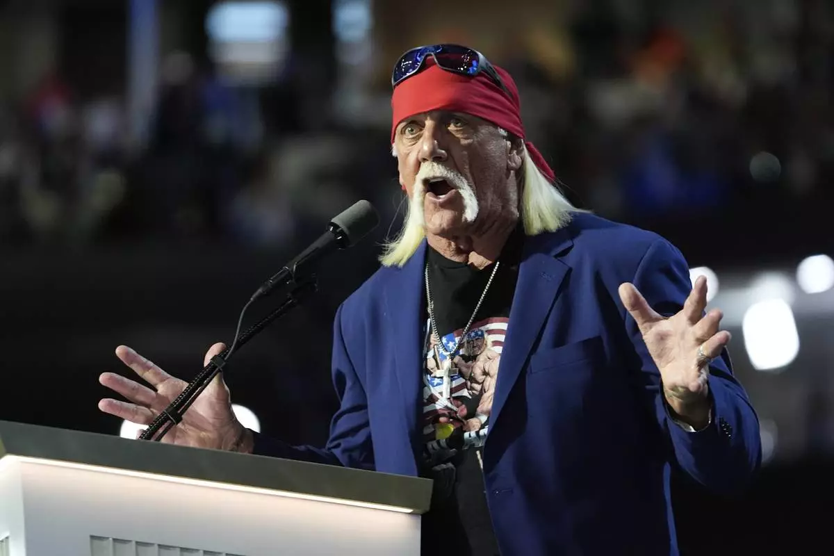 FILE - Professional wrestler Hulk Hogan speaks during the final day of the Republican National Convention Thursday, July 18, 2024, in Milwaukee. (AP Photo/Paul Sancya, File)
