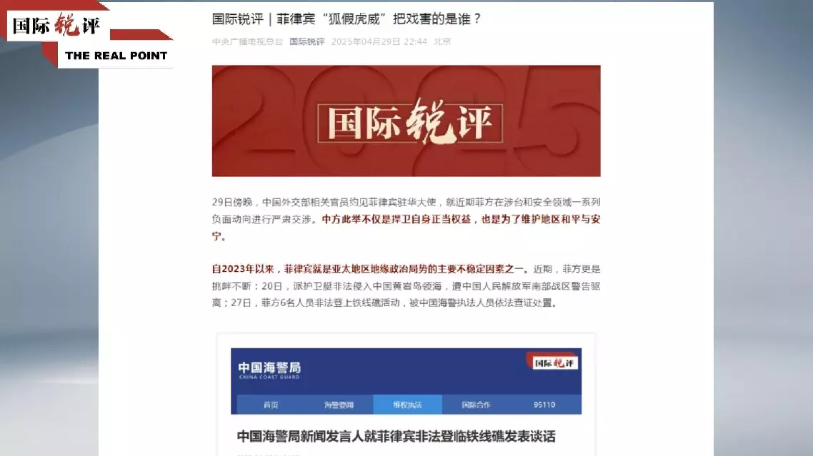 To promote its so-called "diversified" security strategy, the Philippines has used the South China Sea and maritime issues as a means to create "resonance" and gain "sympathy," attempting to leverage intelligence, diplomacy, and public opinion from external countries to expand its illegal territorial and maritime claims.