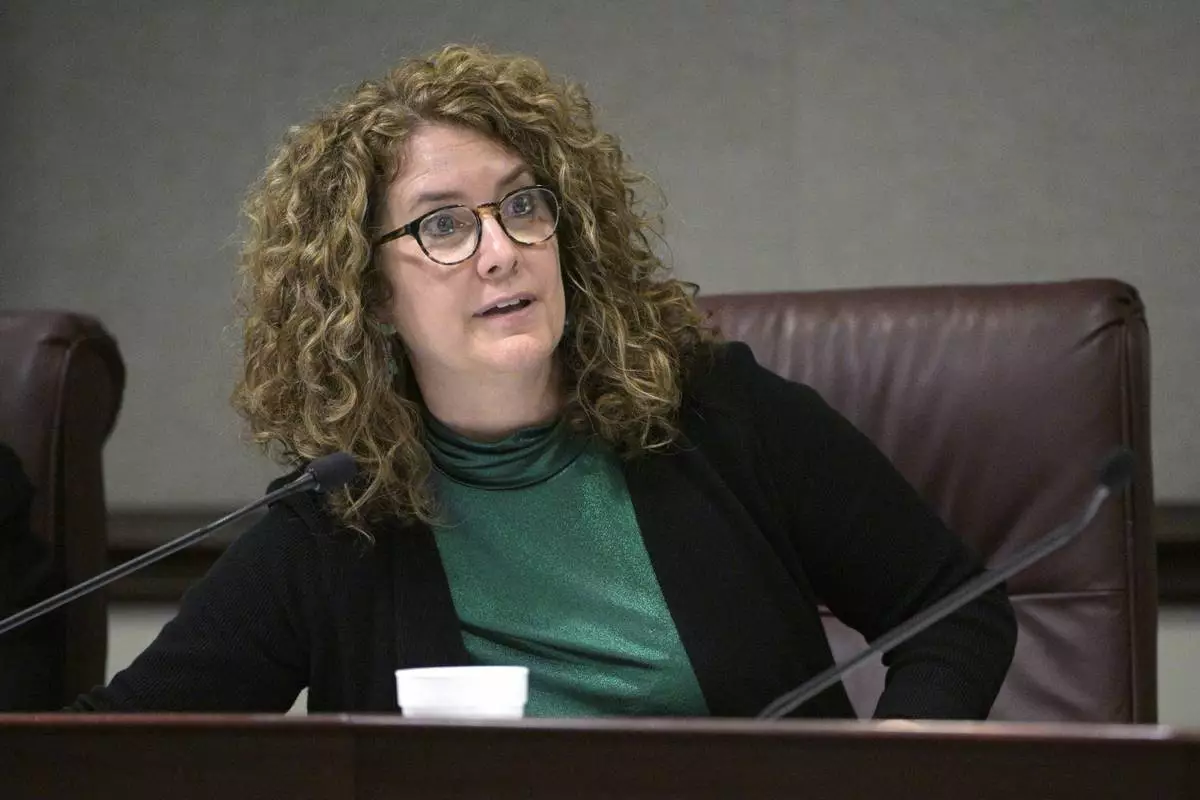 FILE - Florida Sen. Jennifer Bradley makes a point during a Senate Community Affairs Committee meeting in a legislative session, Jan. 12, 2022, in Tallahassee, Fla. (AP Photo/Phelan M. Ebenhack, File)
