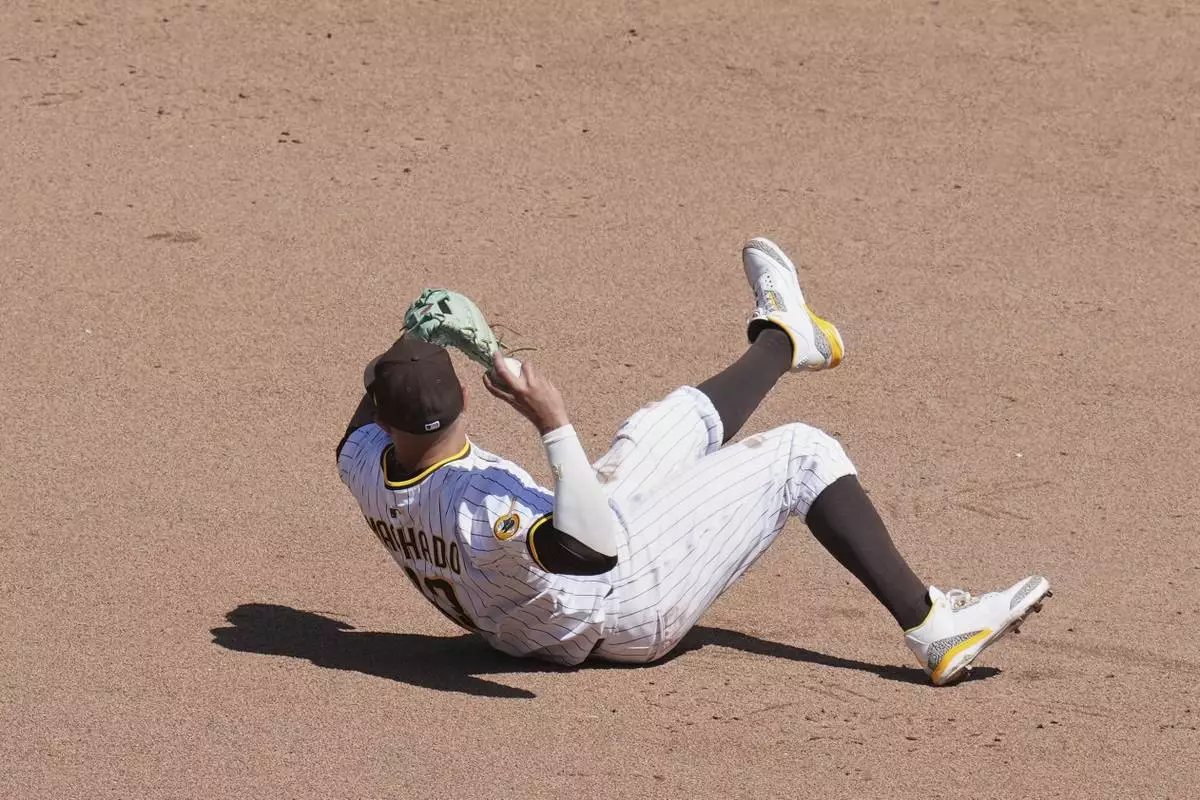 With runners on first and second and one out in the sixth, Machado, the third baseman, dived to his left to field Willy Adames' one-hopper and, while on his back, threw to second to force Mike Yastrzemski.
