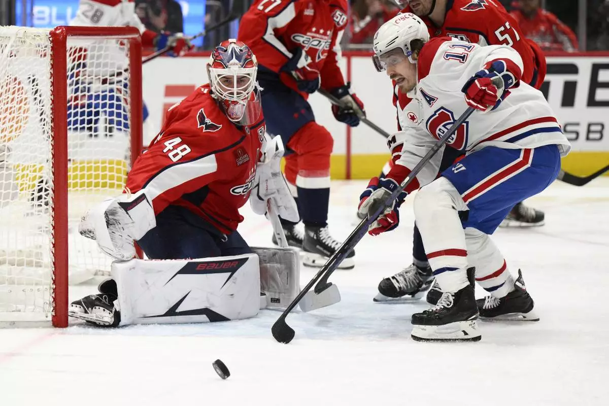 WASHINGTON (AP) — Alex Ovechkin scored on a laser of a shot off a faceoff, Logan Thompson made some spectacular saves among his 28 and the Washington Capitals beat the Montreal Canadiens 4-1 in Game 5 of their first-round series Wednesday night to advance in the NHL playoffs.