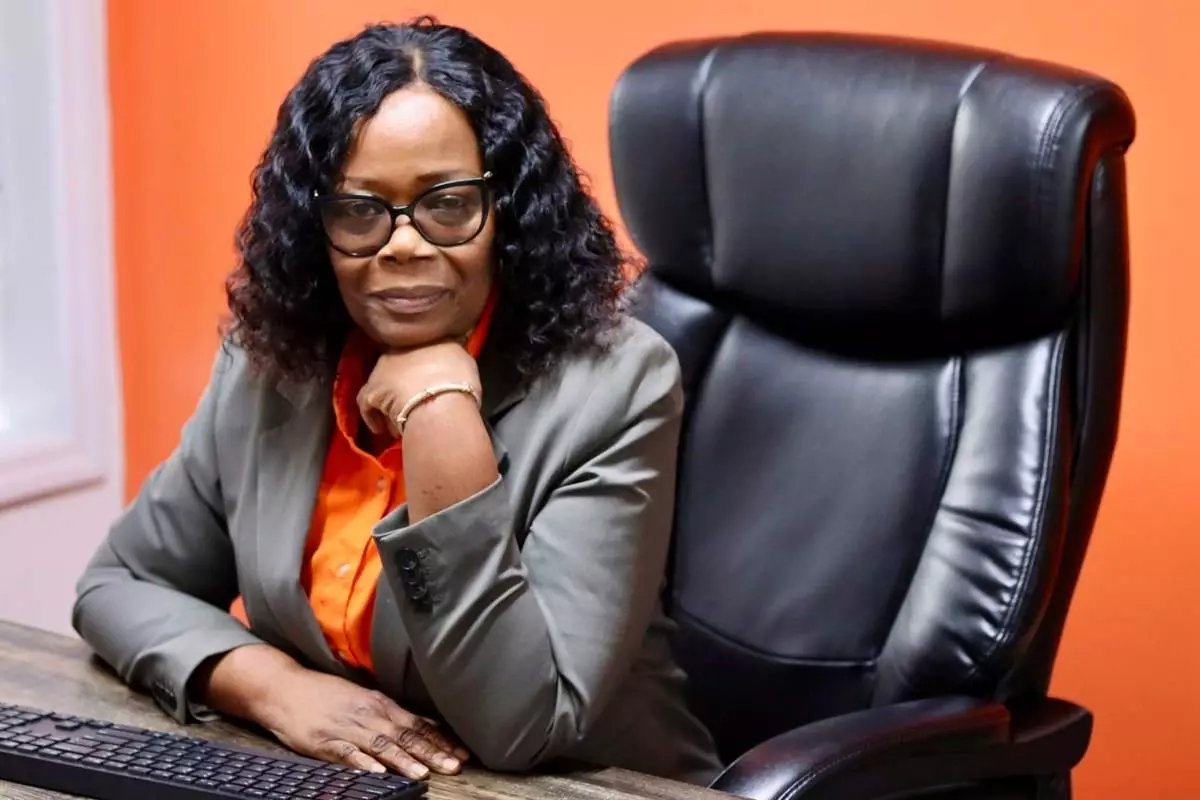 The Campaign Against Hunger Executive Director Melony Samuels sits in her office in the Brooklyn borough of New York, Tuesday, April 15, 2025. (AP Photo/James Pollard)
