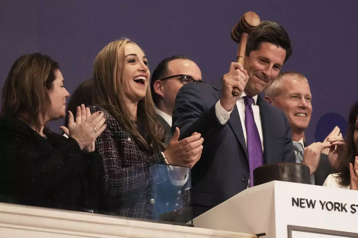Charles Schwab President & CEO Rick Wurster gavels trading closed at the New York Stock Exchange, Thursday, May 1, 2025. (AP Photo/Richard Drew)