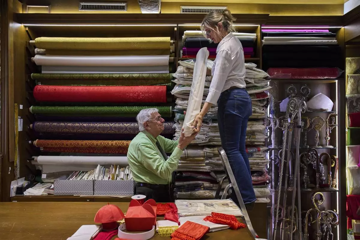 “Francis preferred things that were much simpler and practical,” Mancinelli said inside his shop, just down the street from one of the Vatican’s main entrance gates. “Ratzinger (Pope Benedict XVI) liked slightly more choice fabrics.”