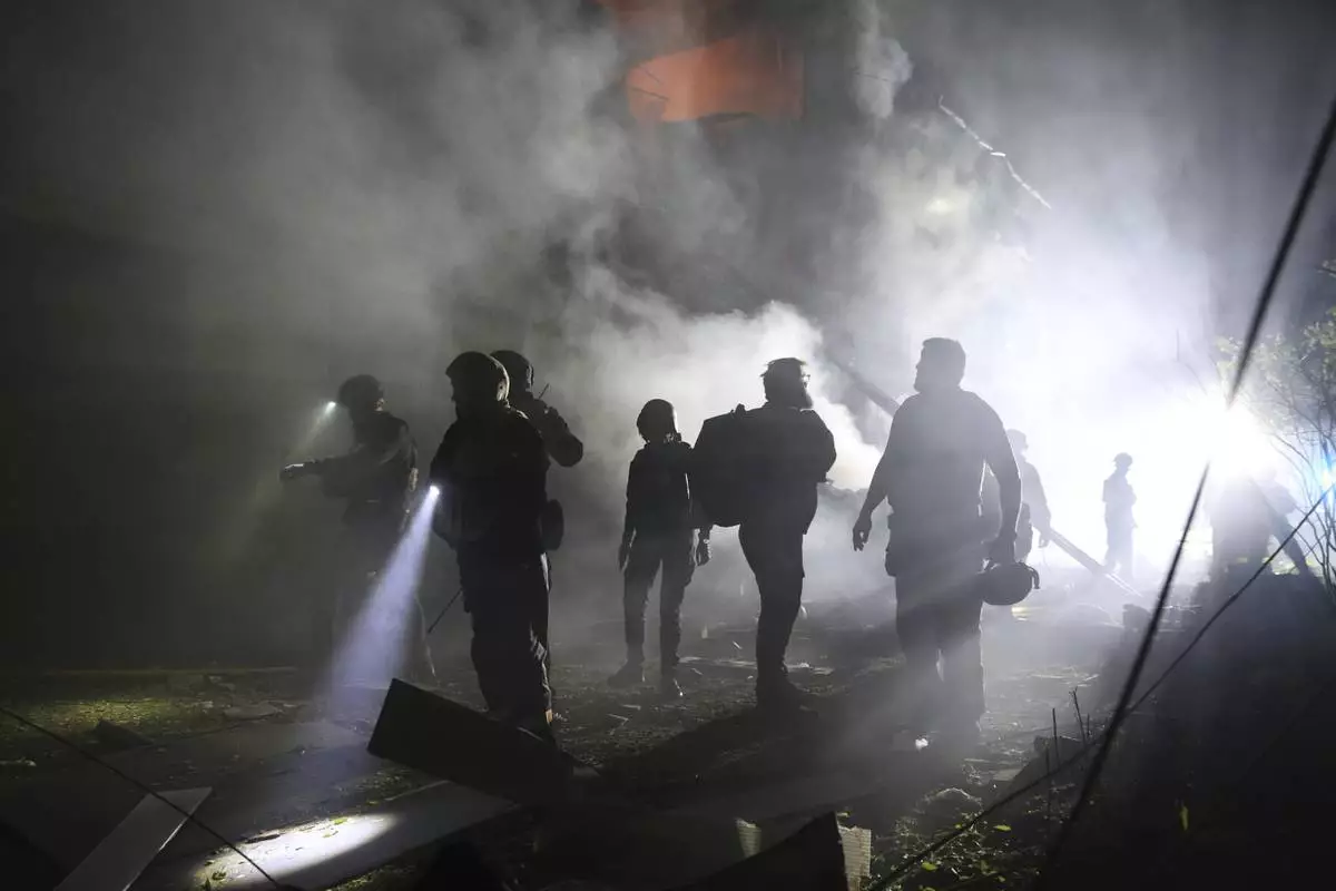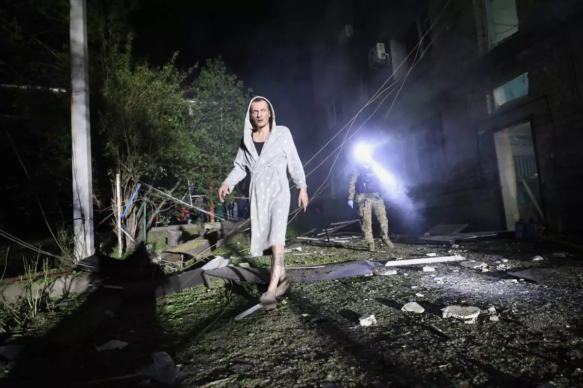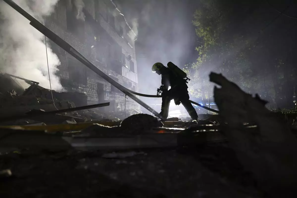 Videos shared by Kiper on Telegram showed a high-rise building with a severely damaged facade, a shattered storefront and firefighters battling flames.