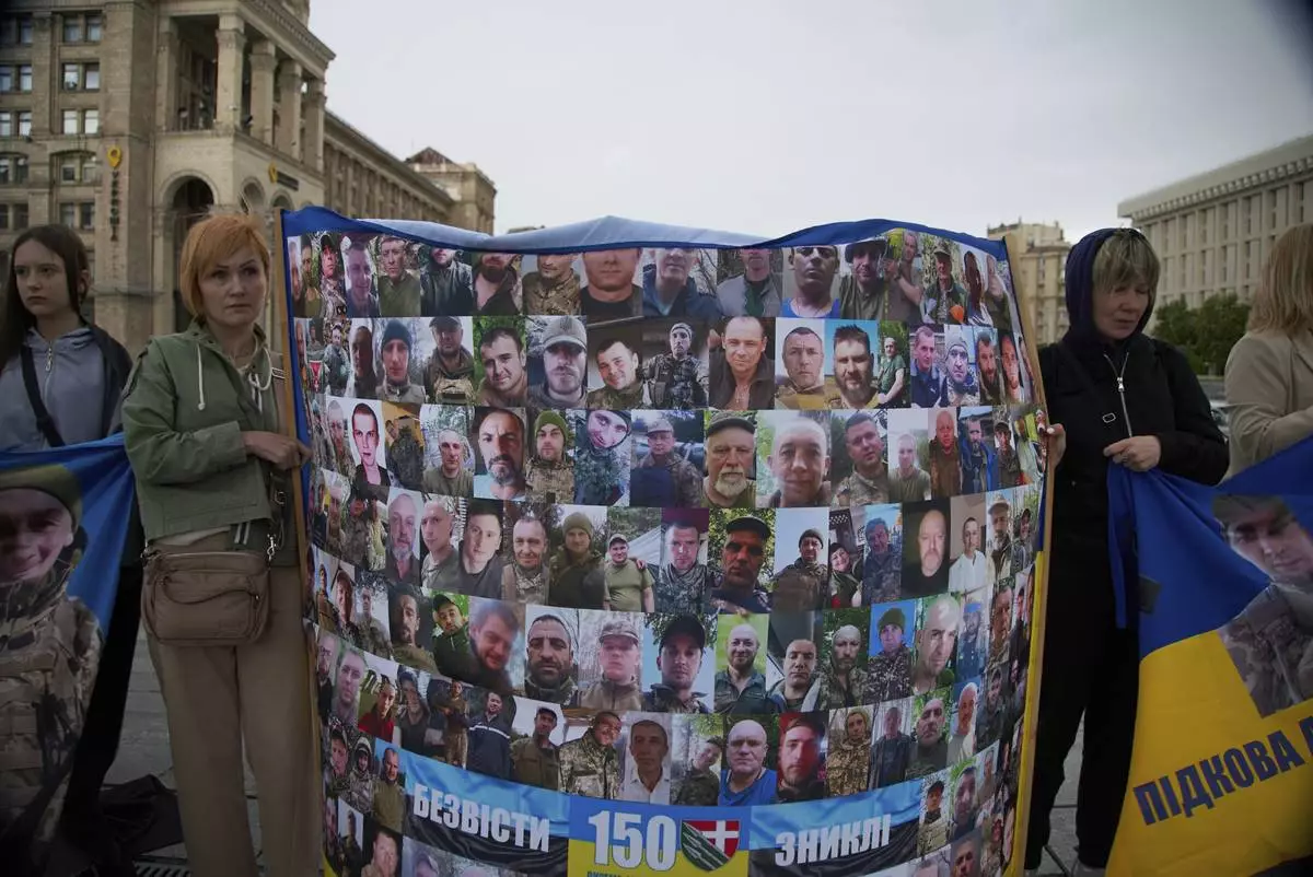 Among those who spoke to The Associated Press about the deal was Diana Abramova, who attended a rally in Independence Square demanding information on missing Ukrainian soldiers. Her father, Valentyn Stroyvans, went missing in combat last year.